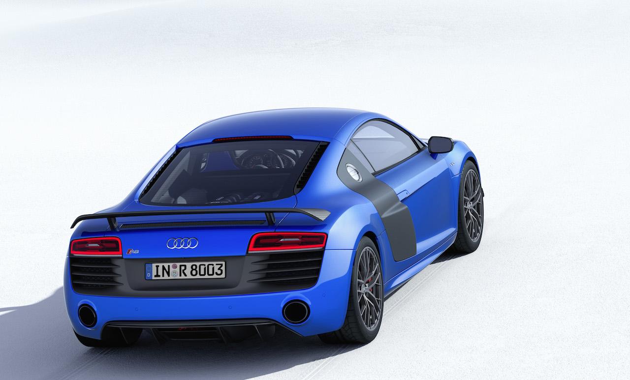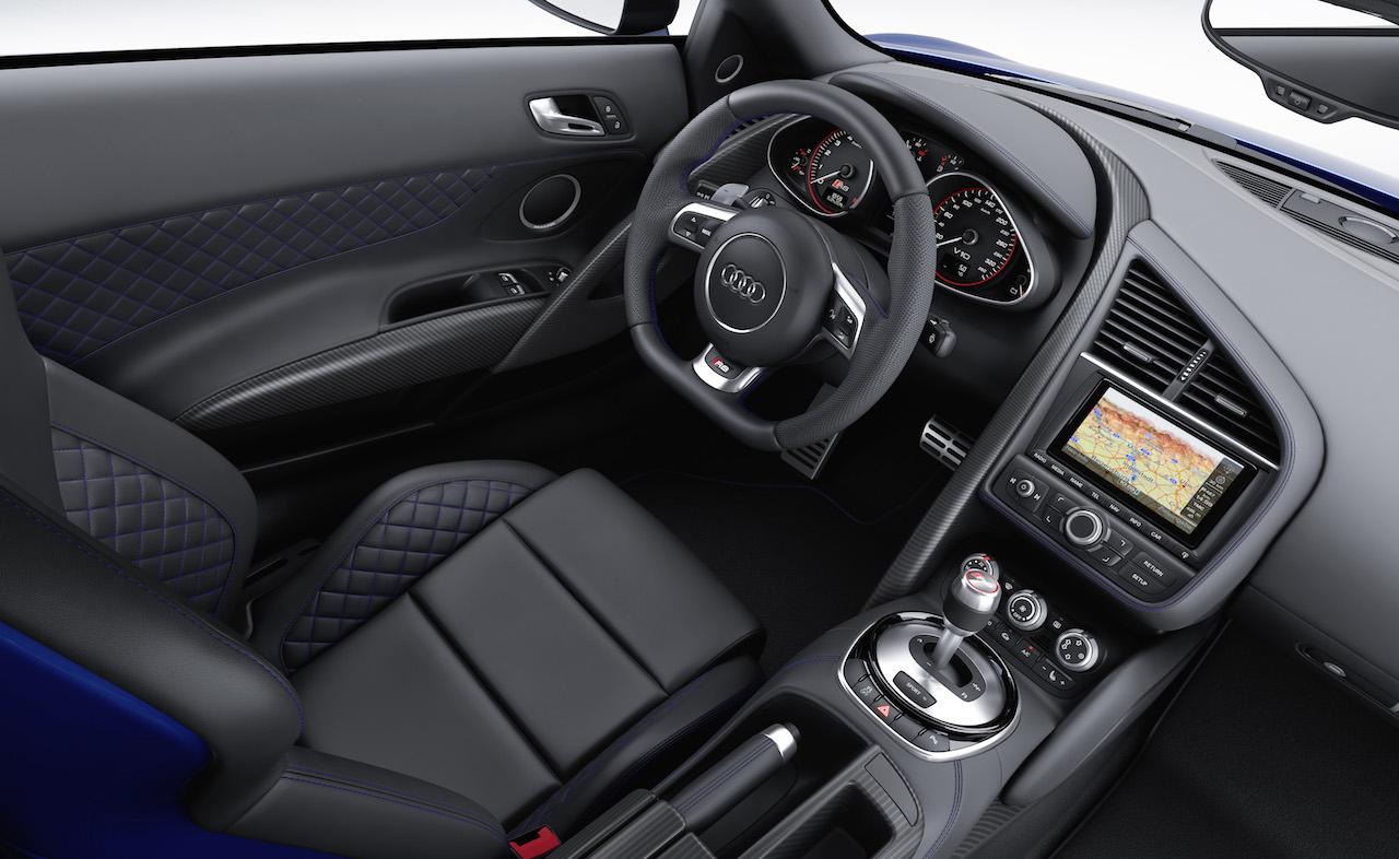 Otherwise, the R8 LMX gets a 5.2-liter, V10 engine good for 0-62mph in 3.4 seconds and a top speed of 198.8mph. Its 570HP is routed through a seven-speed S tronic gearbox and Quattro AWD; red anodized brake calipers can be seen hauling it to a stop through the exclusive design of alloys, and contrast nicely with the limited edition Ara Blue crystal-finish paint.