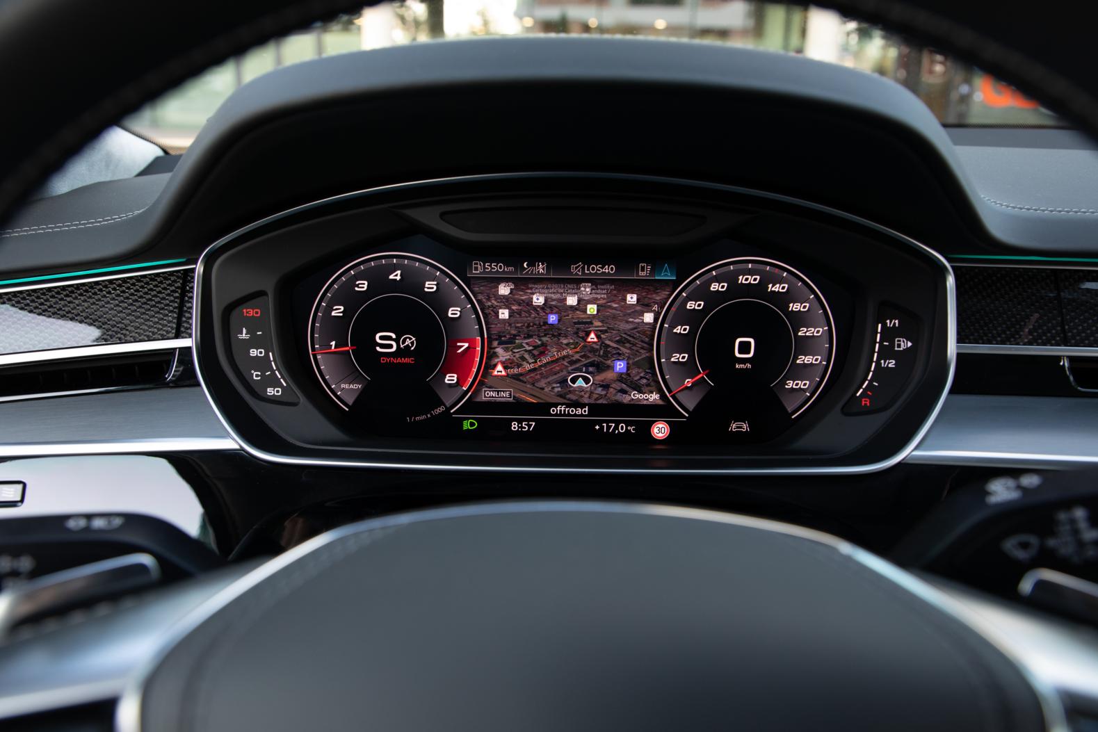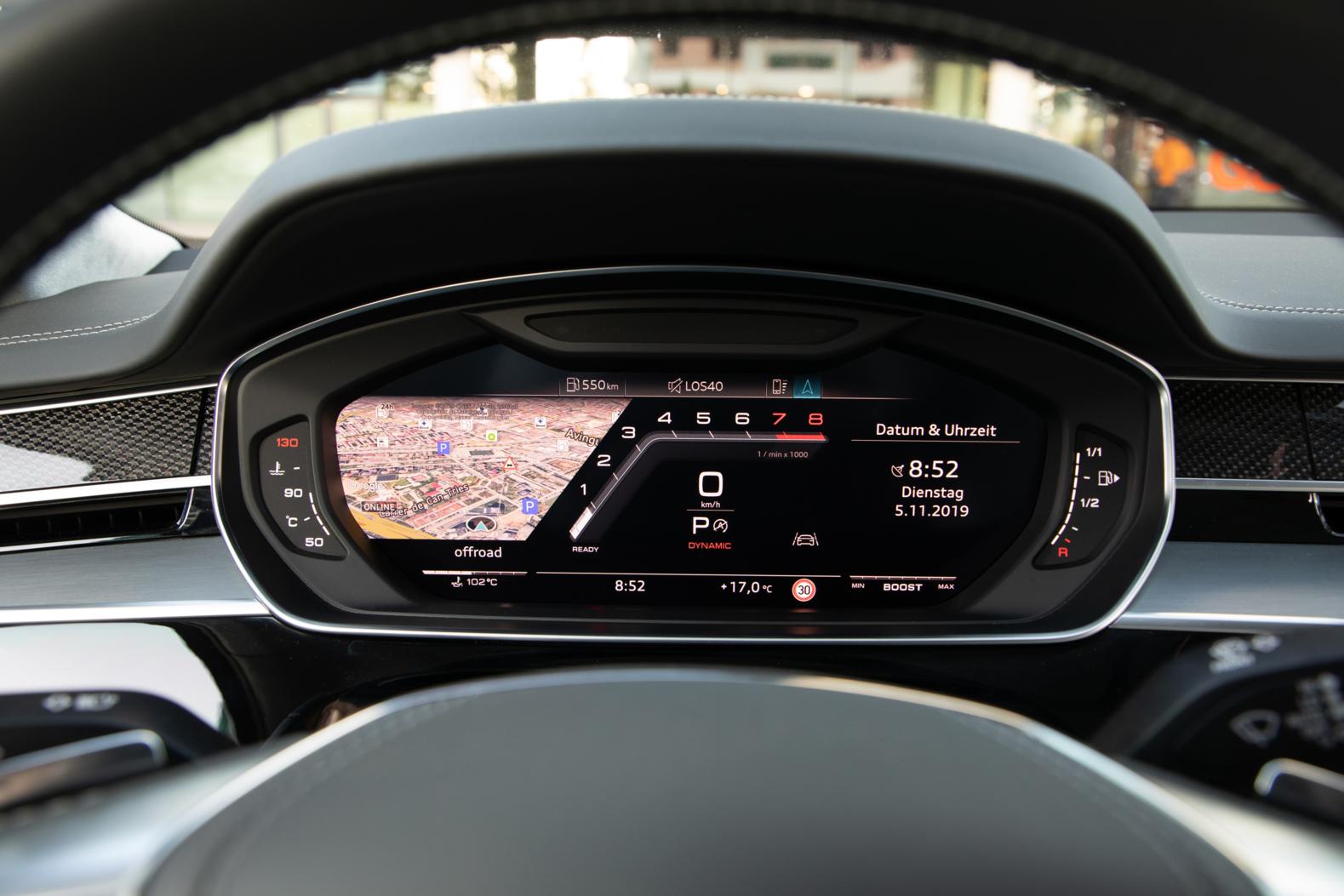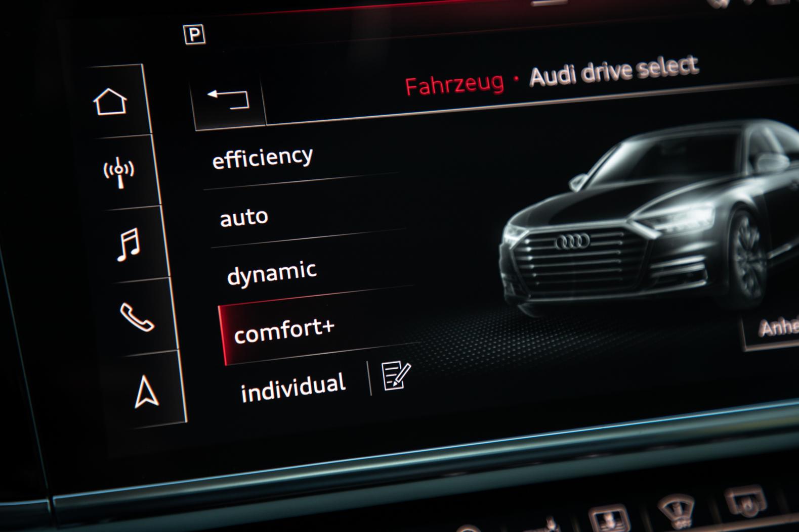 S8 comes with predictive active suspension as standard. The system works in combination with air suspension and can lift or push down each wheel separately via electromechanical actuators. This allows it to actively control the trim of the body in any driving situation and reduce pitch and roll in braking and acceleration. The drive select system has five modes.