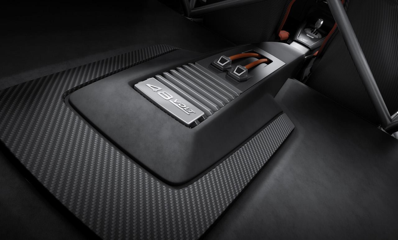 The TT clubsport turbo's electric compressor fills that wait. Powered by a dedicated 48‑volt electrical sub-system using a li-ion battery in the trunk, it spins up almost instantaneously when the driver stamps on the gas pedal.
