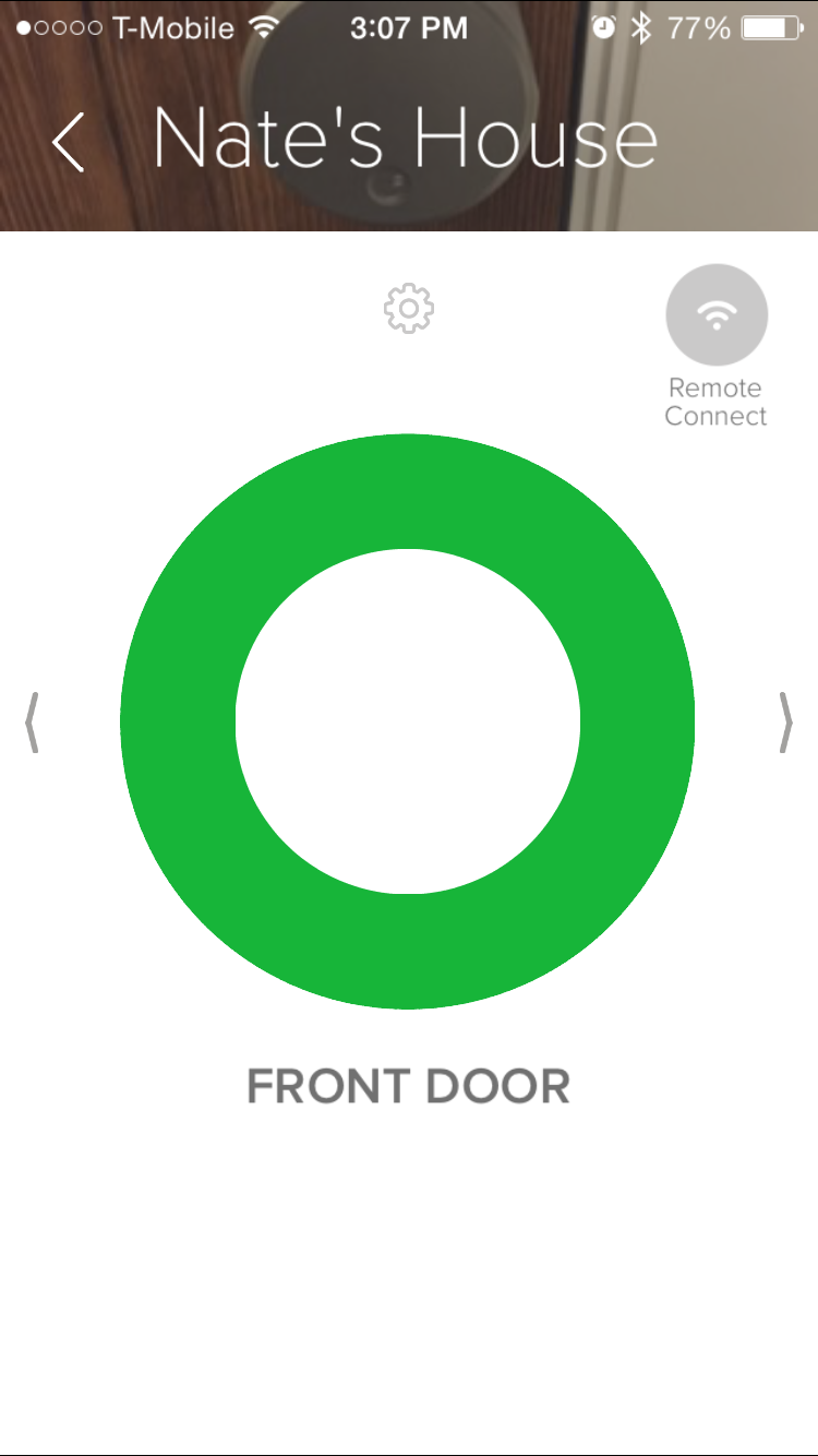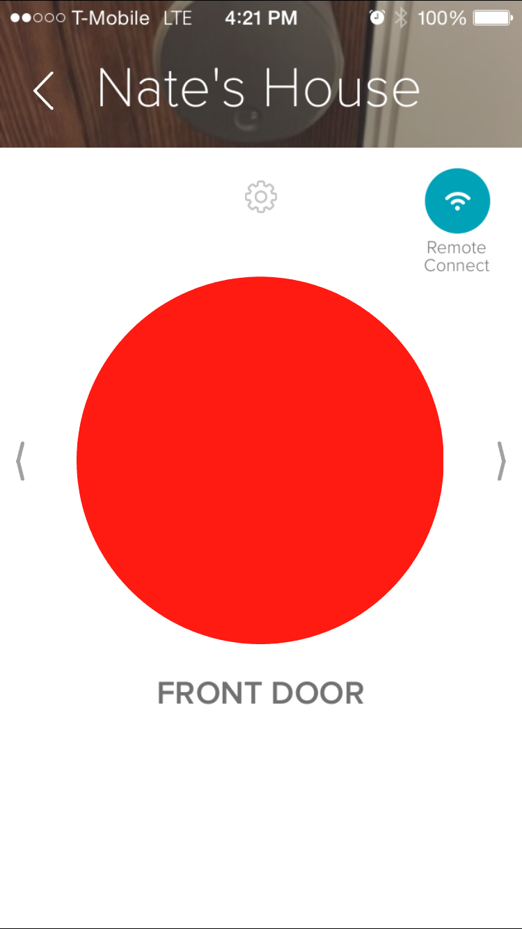 The app is cleanly laid out and easy to navigate, and even has provisions for multiple locations should you have more than one lock that needs an August, which August calls your 'keychain' (clever). Once you tap on the location in question, the app attempts to create a Bluetooth link to your August, and away you go. A red dot means you're locked up, while a green circle means your door is unlocked.