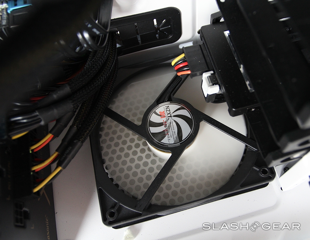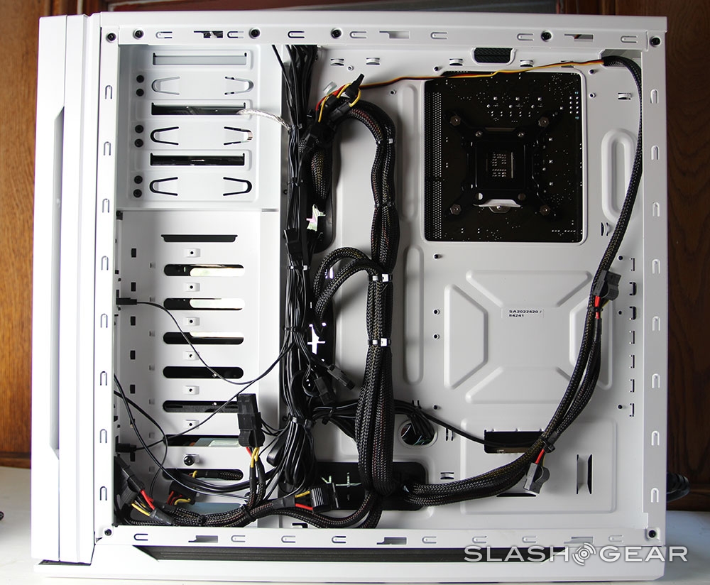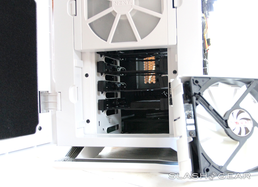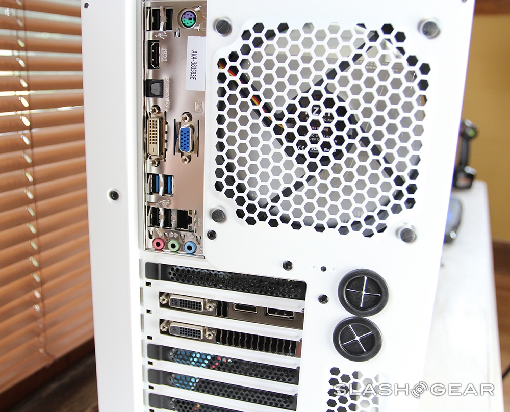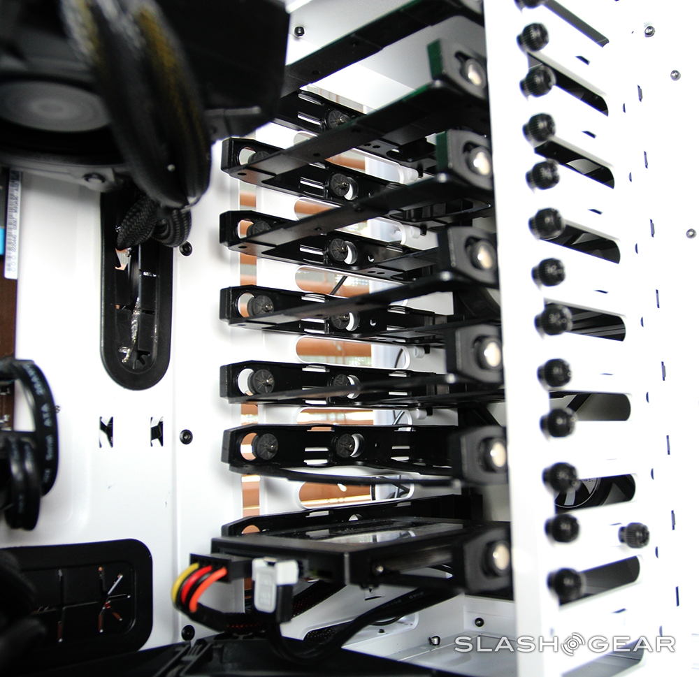 This case is massive, gigantic, and certainly not made for hauling around to LAN parties – there's no handles here, folks. Instead this machine is made to remain stationary, made with so many fans and air ducts that it'll never, ever get hot (it might, but we've not seen it yet), and it's clean. This machine looks fabulous, with a classy white combination of plastic and metal parts and safety bumpers all around so there's no clunks or clanks when you're opening or shutting doors.