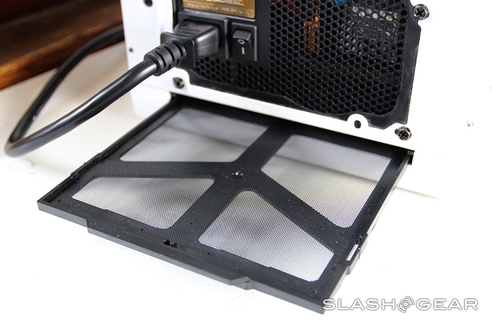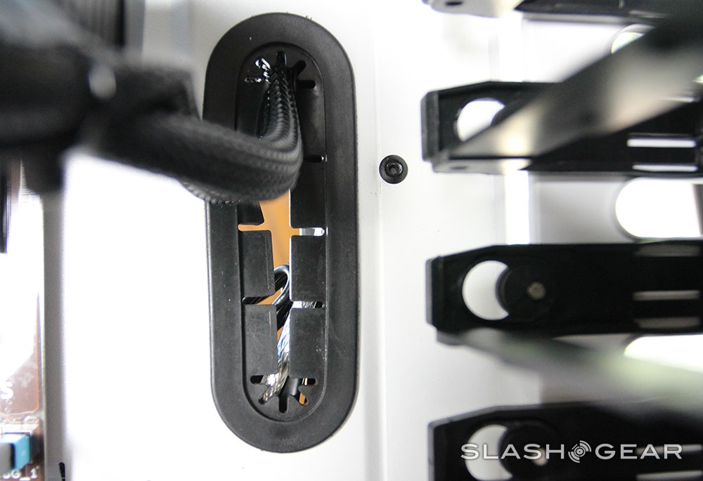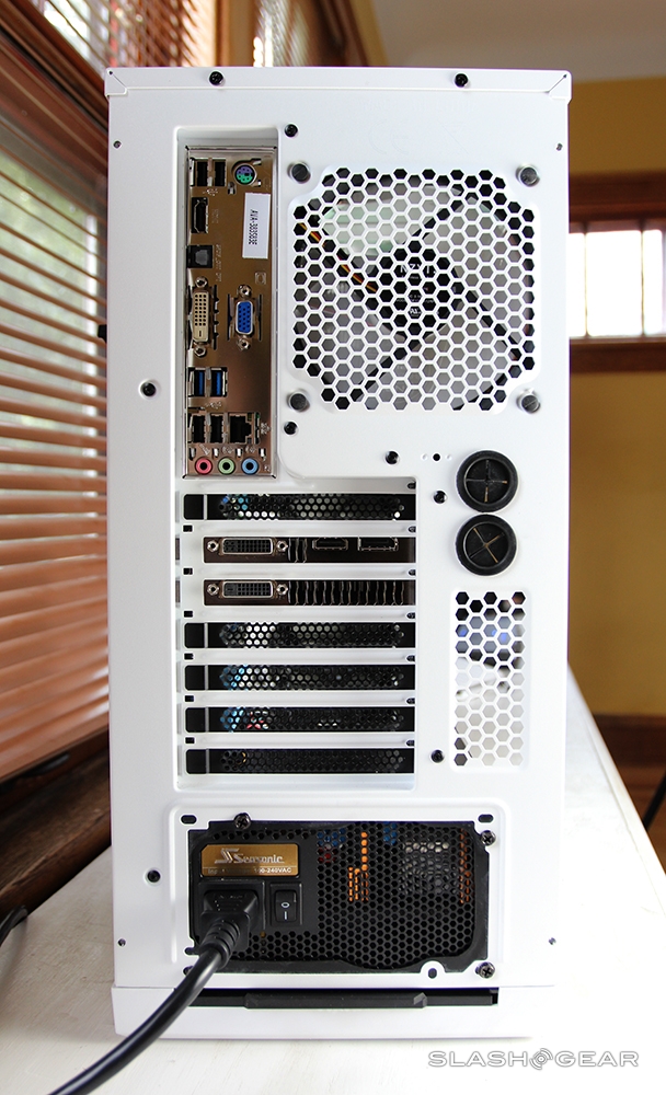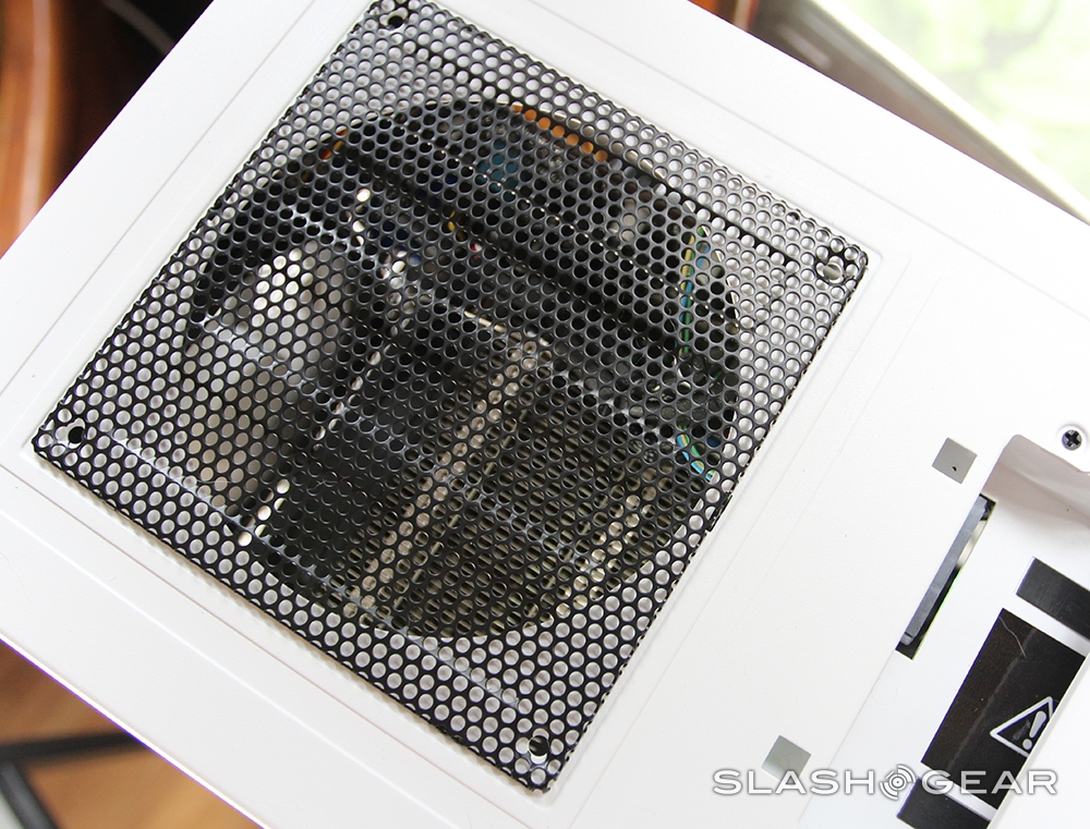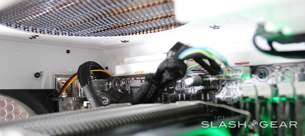 You've also got two distinctive sides to this machine, with the right side having a small area for cords to rest in, keeping them clear of the other side which is the deep home for all of your massive bits of next-level gear. For those of you that love lights, you'll find a few well-placed green LEDs sitting down deep in the guts, blinking like it's no big deal, while a couple of white lights shine up front through those crevices mentioned above so you know the machine has been turned on. Again – if you didn't have a monitor plugged in to show you that the beast was turning on, you might never know it for how silent it is – that's what the lights are for.