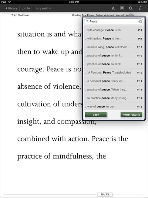 · Learn more: Tap a word on the touch screen and the in-text dictionary offers you the word's meaning. Want to learn more? Simply tap one of the options to take you to the Google or Wikipedia page on that word or term using the Web browser.
