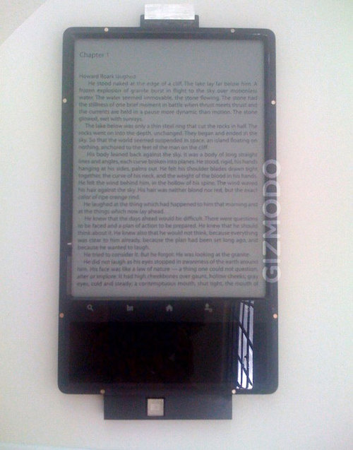 The e-ink panel would be used to display book content, and have the usual sunlight-visibilty, low power and text-crispness benefits we've already seen on the Kindle and numerous other ebook readers. However the color touchscreen below it would be used to show menus and an on-screen QWERTY keyboard, and used to quickly navigate the device.