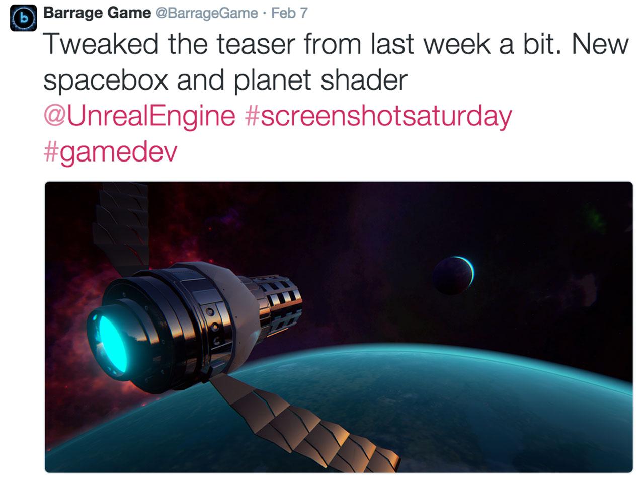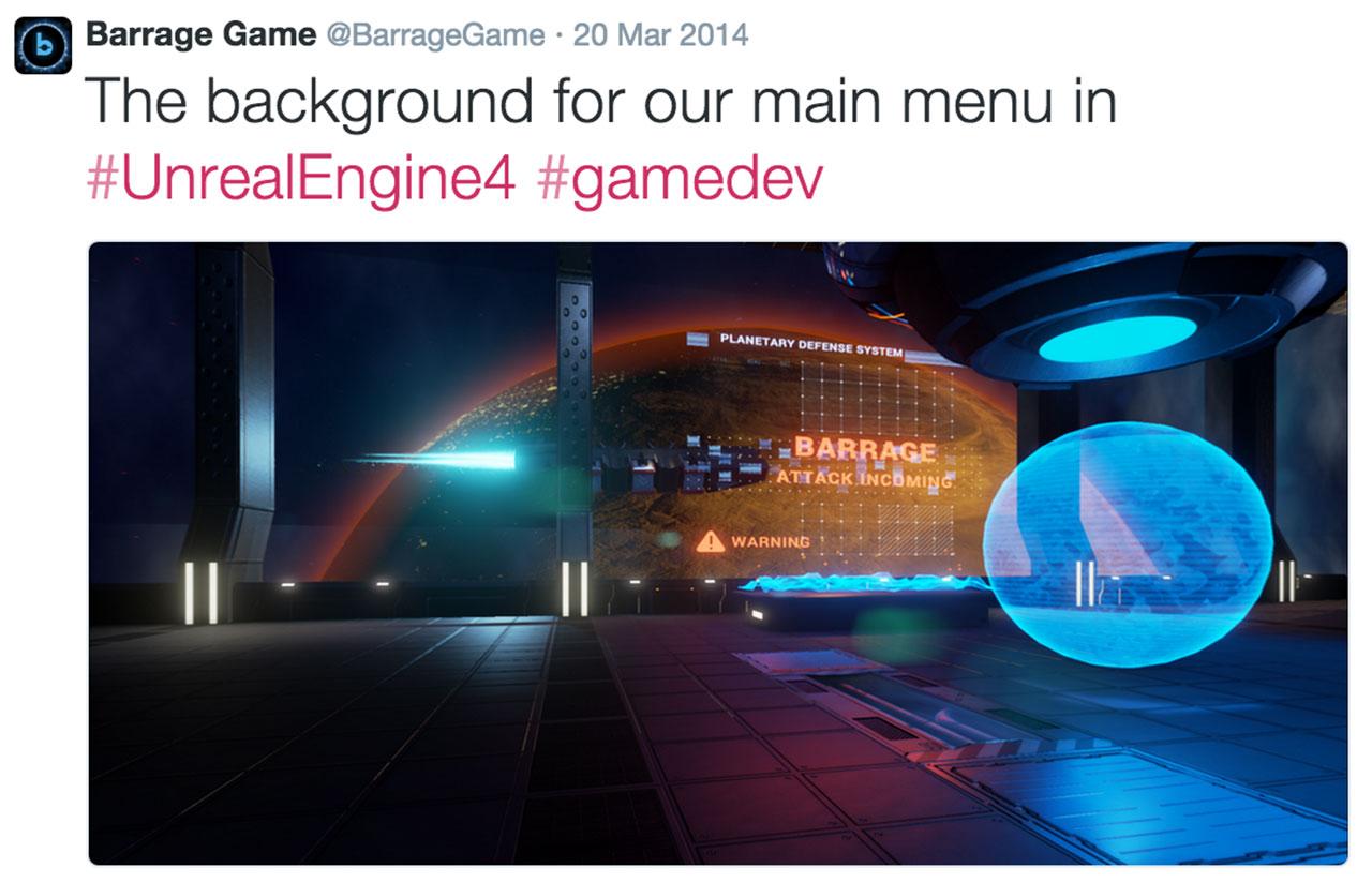 Beyond the game itself – which should prove to be an interesting piece of work – the team has provided early fans with close-up looks at their development process. Through the team's @BarrageGame Twitter account, working with Unreal Engine 4 comes to life.