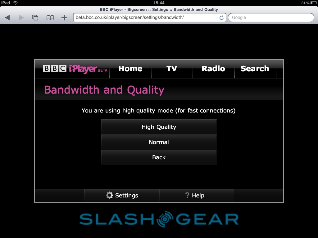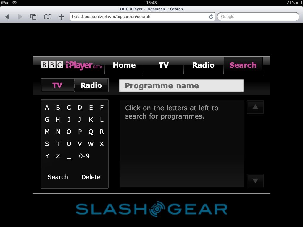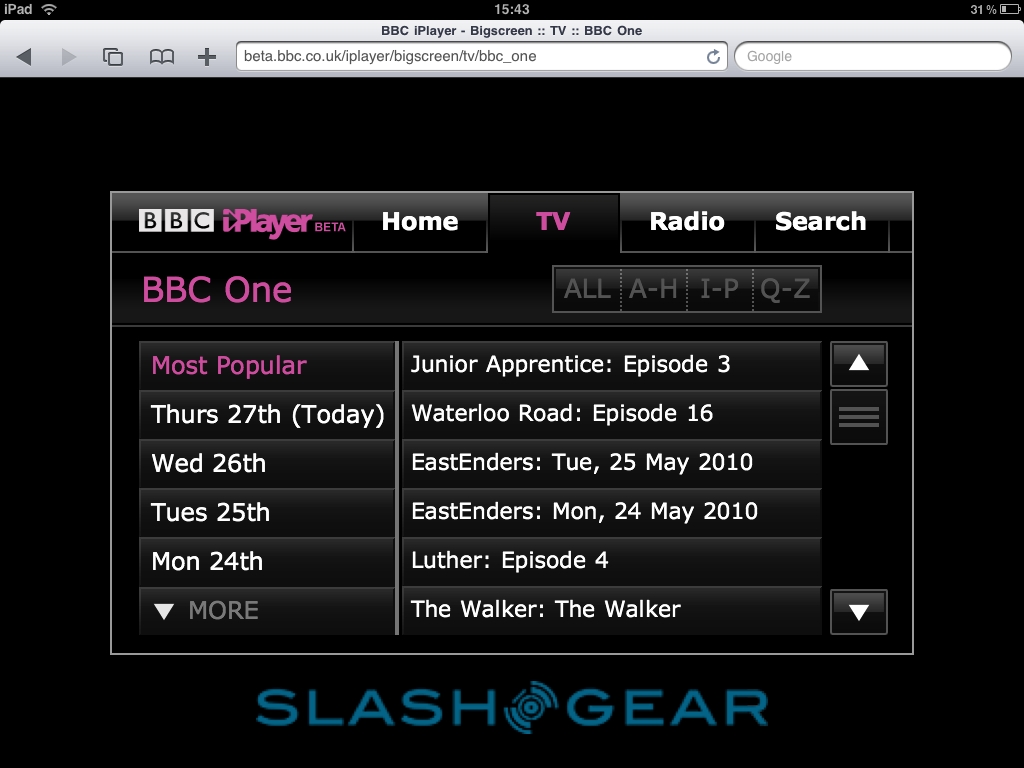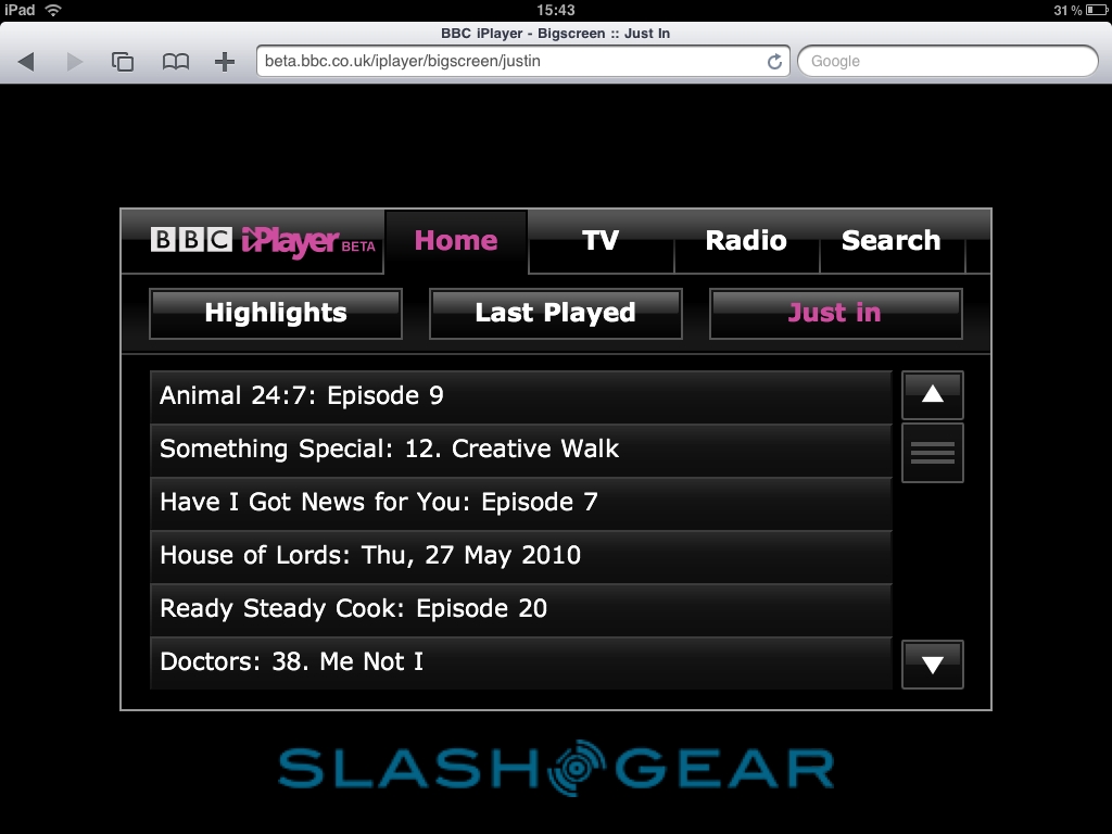 The only notable omissions we've spotted are bookmarking support and a full-screen mode: exit playback and then reopen the show and it'll start again from the beginning, while viewing iPlayer in Mobile Safari leaves you stuck with the address bar. Still, they're minor faults, and the BBC's use of "bigscreen" suggests they have plans for iPlayer beyond Apple's new tablet.