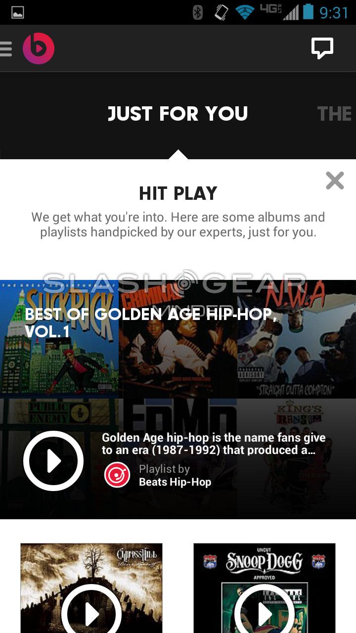 You can use the Find It tab to run through Genres, Activities, and Curators. The Highlights tab brings a collection of albums, artists, and playlists "handpicked by the best experts in music." And the initial tab you see when you first open the app each day you're rolling with it is "Just for you." Here you'll find such lists as "Best of Golden Age Hip Hop, Vol.1" and "Intro to DIO".
