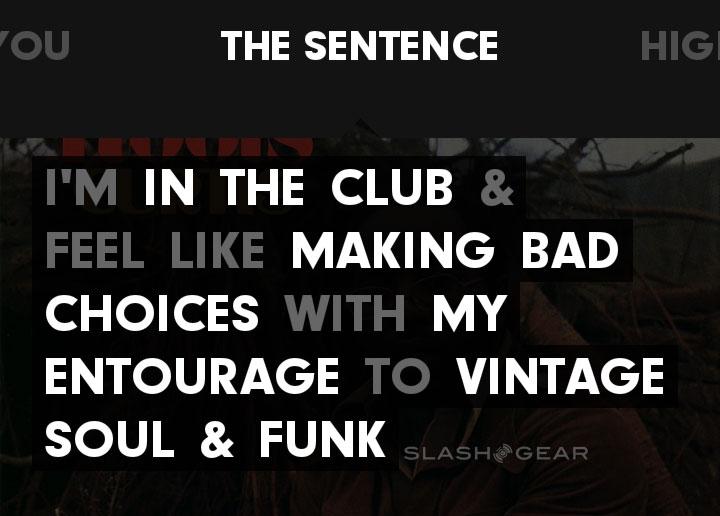 Once you're inside the main UI, you'll find more inroads toward music of many types than you'll know what to do with. Unlike most other, much simpler music serving services, Beats Music takes the time to serve you in a variety of different ways. One of these ways is "The Sentence".