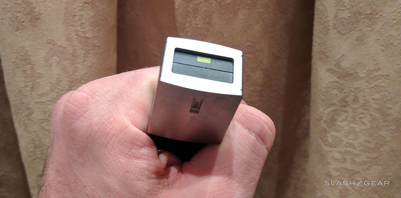 There's a single LED on one end of this device to indicate when it's active, and its USB plug pops in or out, depending on if it's in transport or being used.