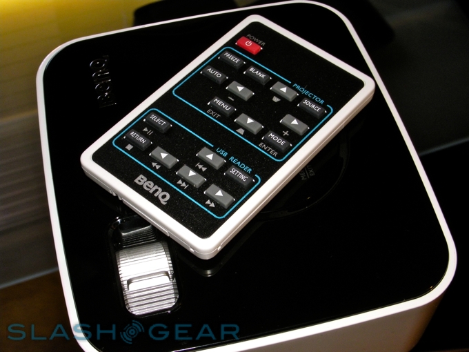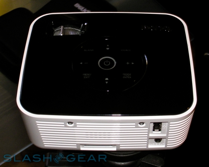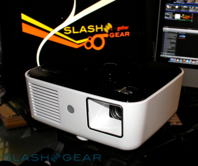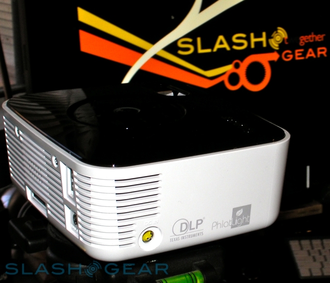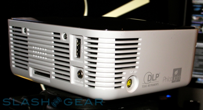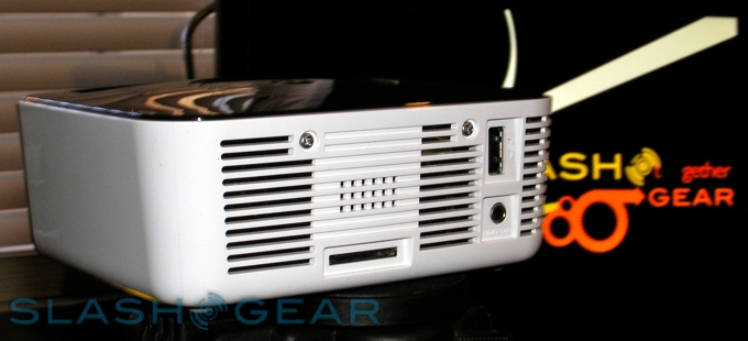 For $499, you get the world's first-ever LED-based projector with a USB reader. Specs wise, you'll find a Texas Instruments DLP projection system outputting 858 x 600 resolution, 100 ANSI lumens, a 2,000:1 contrast ratio, a built-in 2-watt speaker and VGA / component / composite inputs. Did I mention that it's only 1.4 pound projector?!