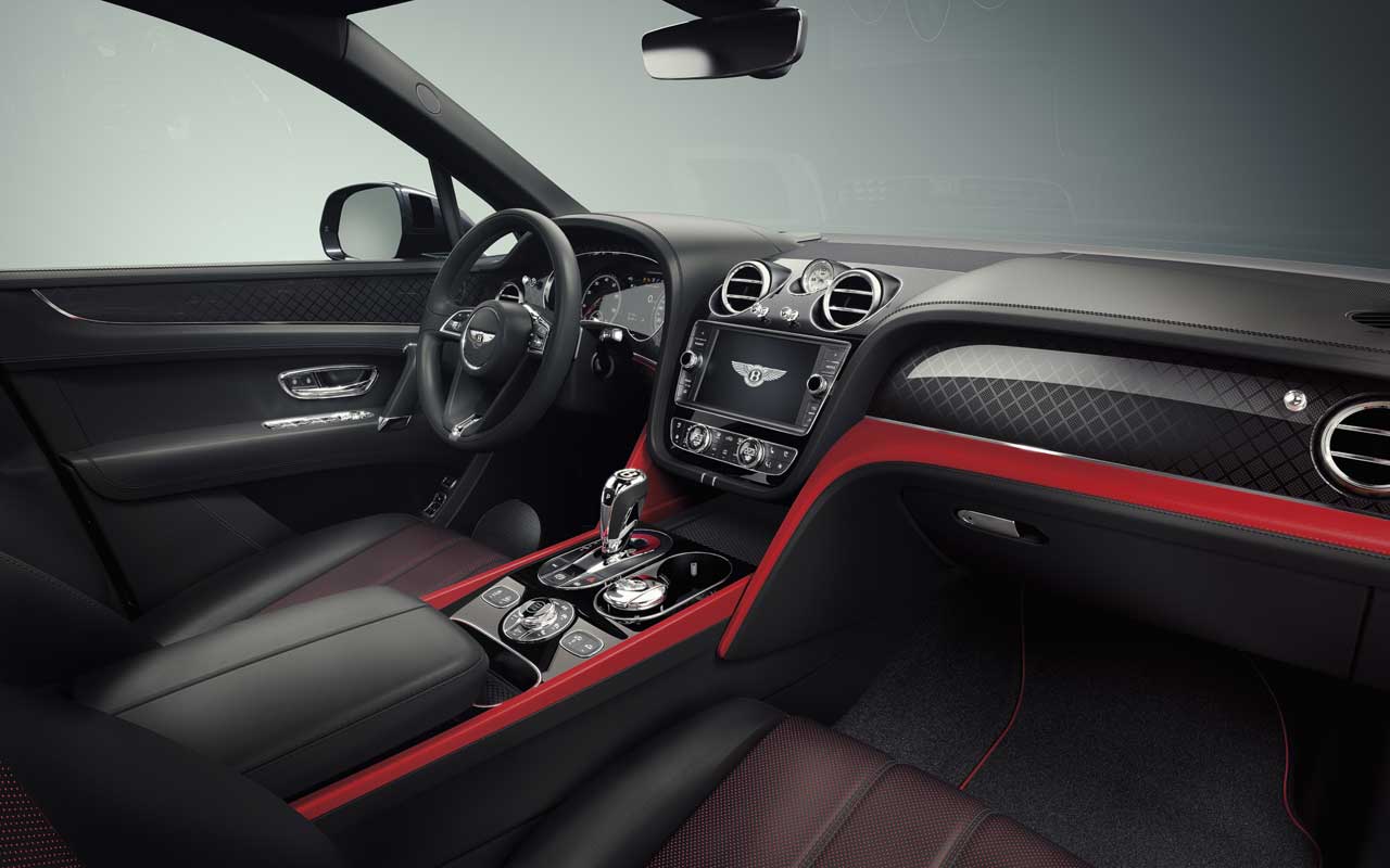 The Bentayga V8 Design Series is offered in pillar box red, orange, Mulliner white, and Klein blue duotone interior pallets. The interior also has a diamond quilted pattern and a luxurious gloss finish. A Piano Black finish is applied to the center console and center fascia. Bentley illuminated tread plates are featured to welcome passengers and driver to the ride.