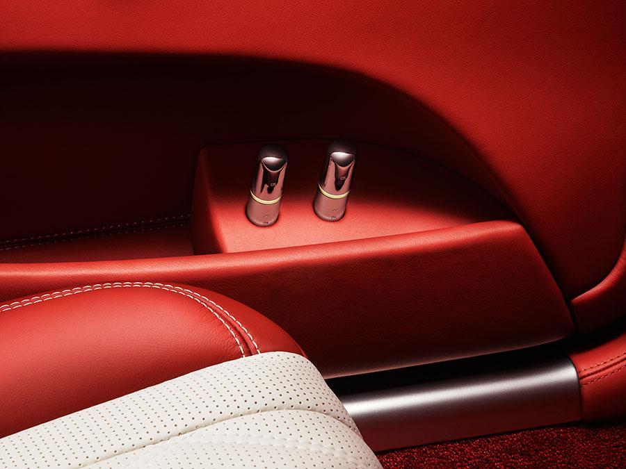 Sterling silver atomizers can be fitted into the doors to spray fragrances or water to refresh the rear seat passengers. Hide-trimmed stowage boxes are available including a watch holder, cufflink stowage, and coin stowage. Mulliner signature quilting is available for the center console, seat bolsters, and door panels.