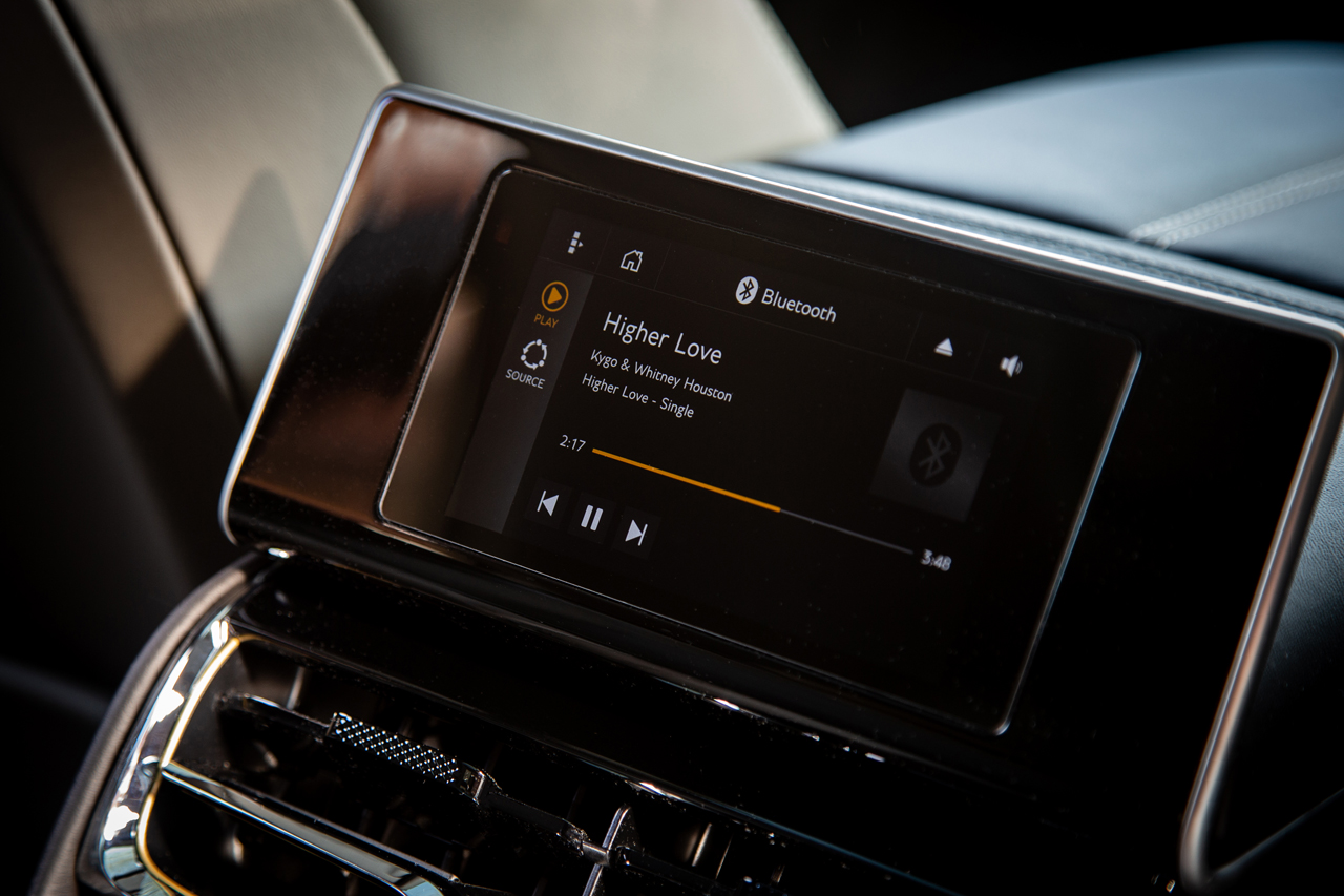 When users press a button, the remote deploys from atop the rear center console, it's held in place by integrated magnets ready to be used by the rear seat passengers when needed. The remote control has a four-core processor and 1GB of onboard RAM. The display has a resolution of 1280 x 720. An array of sensors, including a three-axis accelerometer and proximity sensor along with haptic feedback, make the remote easy and intuitive to use.