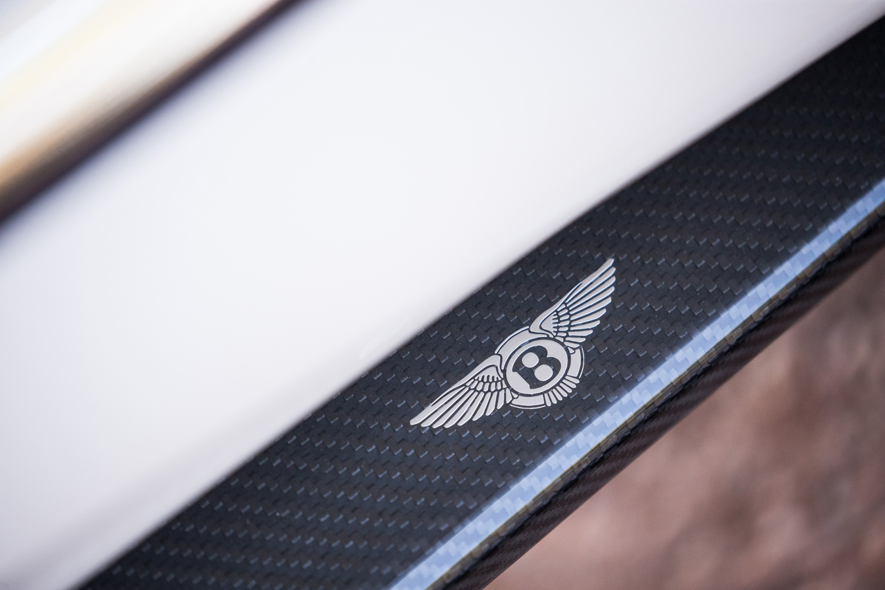 The side skirts have a three-dimensional electroformed Bentley badge. Bentley design the profile of the badge specifically for the Styling Specification to minimize any risk of air bubbles forming in the lacquer overcoat while still giving the badge a faceted appearance.