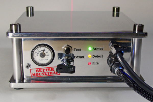 Inside the 0.25-inch thick hand-crafted aluminum case lurk the various solenoids, valves and electronics, and the whole thing tips the scales at 5.5lbs. To be honest you could probably do more damage to vermin by throwing it at them, but then that's not taking advantage of the 60psi of pressure on tap.