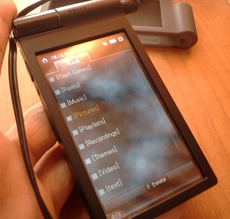 iRiver have seemingly released a black version of their SPINN PMP, although at present it only appears to be available in South Korea. Specifications for the PMP seem to be the same, aside from the color change, which means a 3.3-inch AMOLED touchscreen and iRiver's nifty spinning control wheel.