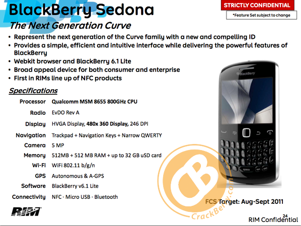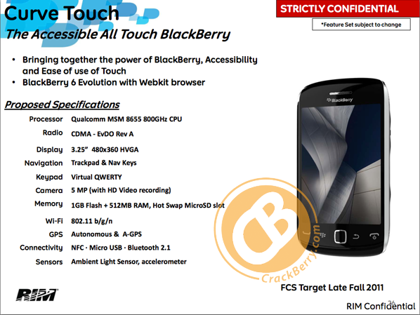 BlackBerry 2011 CDMA Roadmap Leaks: Monaco, Sedona, Curve Touch & Bold Touch