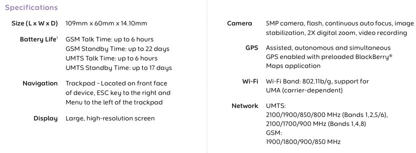 There's also autofocus and and an LED flash, GPS, 512MB of of flash storage and a microSD slot good with cards up to 32GB. WiFi calling is supported (UMA where available) and of course there's RIM's new WebKit based browser which is significantly better than the rather janky old version.