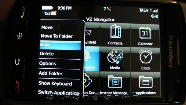 OS is RIM's latest, v4.5, with the new BlackBerry GUI and the same updated iconography and menus as seen on the BlackBerry Bold.  The controls have had a slight size update, however, to better suit them to finger input, and the general layout is predictable and straightforward.  As with the Bold, the hardest thing to get used to is the reworked icons; if you're a long-standing BlackBerry user, factor in some time to get used to the new, streamlined pictures.  Ironically, new users will probably find it easier than the old OS, to whom the massed menu pages full of tiny detailed icons could be intimidating.