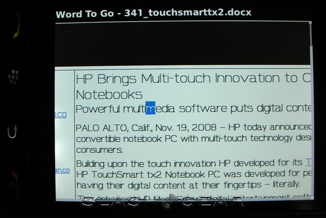 Attachment handling is courtesy of Documents to Go, from DataViz, offering compatibility with Word, Excel and PowerPoint files.  RTF and PDF files are also supported, though only as attachments, but all can be edited on-device.  The Professional edition of the app, a roughly $70 upgrade, offers spellchecking and advanced formatting options, among other things, but we can't exactly see ourselves doing major editing on any smartphone.