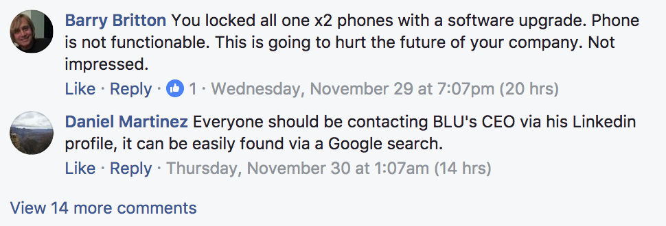 The entire nasty saga can be found on BLU's official Facebook page as well as through the main BLU Reddit community SubReddit. This is a perfect example of how NOT to respond to a crisis in this industry – take note!