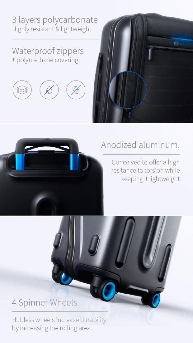 A digital control lock means you can lock and unlock your suitcase with your smartphone, all relying on Bluetooth. If you wander off in the terminal — or your bag does — would-be thieves won't have easy access to what's inside. It's also a pretty secure way to prove ownership of your carry-on.