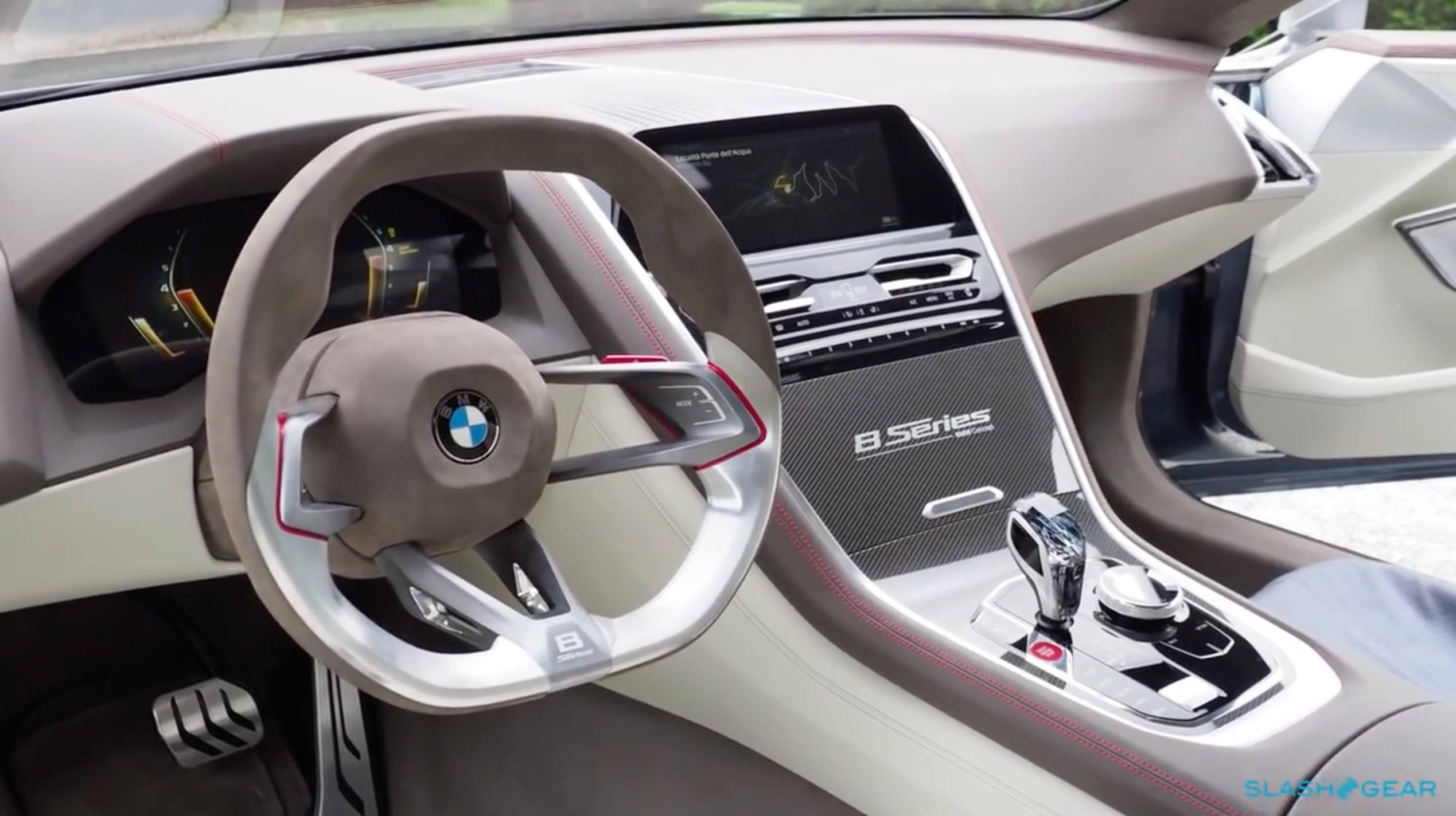 There's a cohesiveness between the Concept 8 Series' external and internal design which suggests BMW's designers went the extra mile over a typical show car. That goes right down to the materials inside out out, like carbon-fiber. The exclusive sport seats, for instance, are wrapped up in a carbon-fiber shell and cuddle your body snugly and comfortably, while also speaking volumes about the performance of the car. They wrap around you the same way a custom Italian suit hangs perfectly on your body, but again, there's no guarantee they'll make it through to the production car.