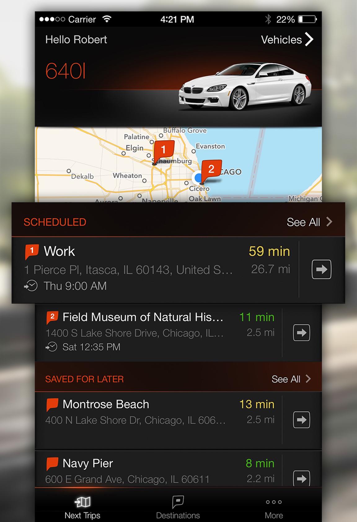 Once granted permission, BMW Connected can watch out for meetings and appointments in the driver's calendar, as well as track personal destinations commonly visited, and automatically pop up notifications with suggested times to leave.