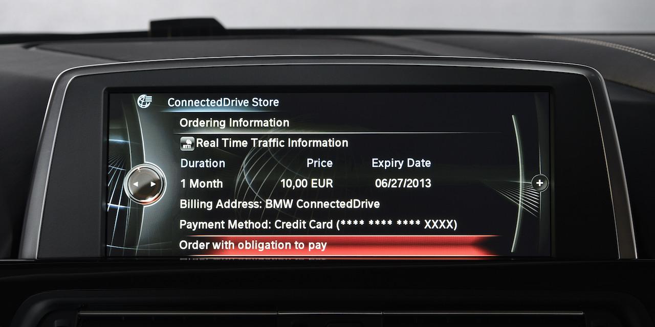 With a BMW account, and a registered credit card, ongoing and one-off subscriptions can be applied. So, drivers could add temporary real-time traffic updates when they're doing extra traveling, all organized directly through the iDrive controller.