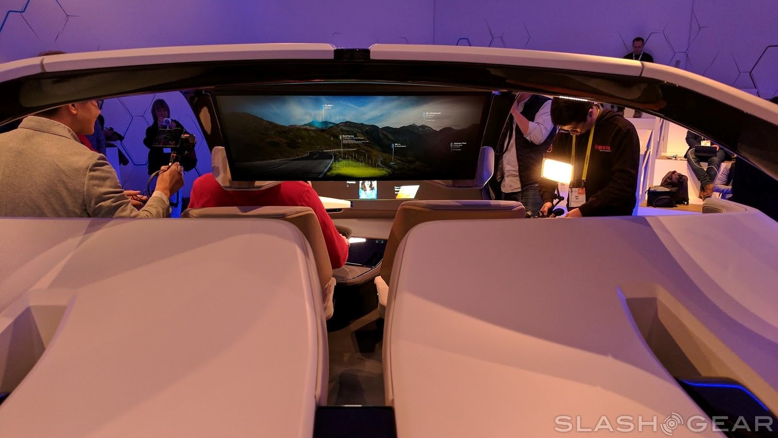 With artificial intelligence, cameras, and computers left to handle the driving in fully autonomous cars, that opens up a lot of possibilities for the interior, and the i Inside Future sculpture reflects that. The seats in the car are wider than many might be used to, with a large screen in front of the rear seats perfect for watching all kinds of video content.