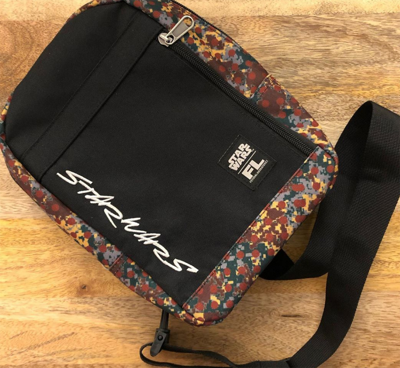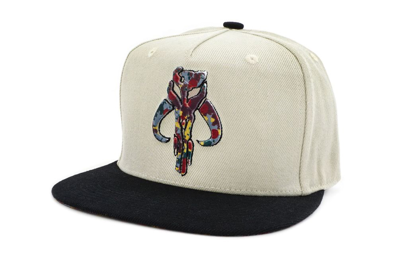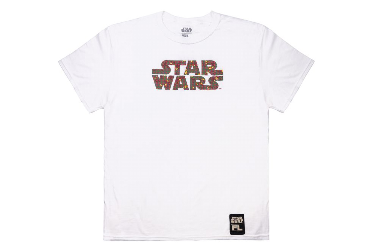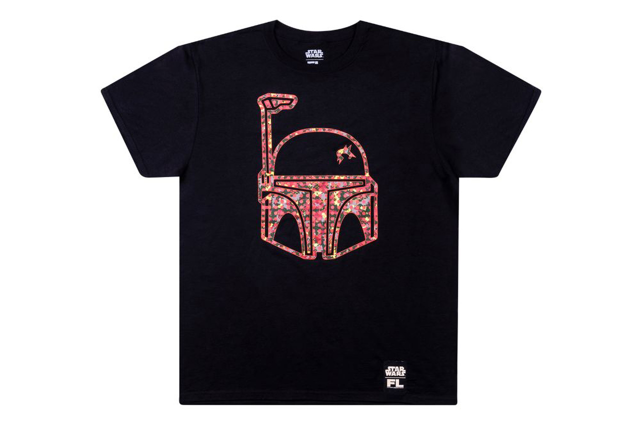 The collection also features two t-shirts that cross Futura Laboratories with Star Wars and Funko. One has Boba Fett's helmet with the same sort of patterned paint as the Pop. The other has the Star Wars logo with the paint inside. A very similar set of designs appears in a pair of baseball caps as well.