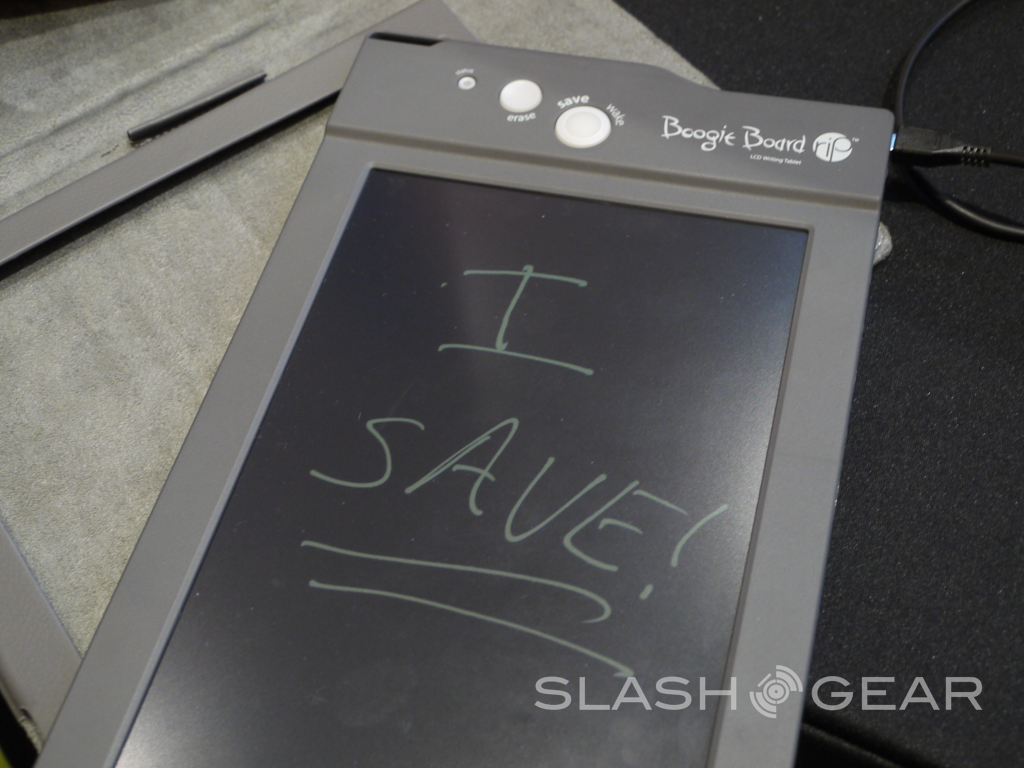 These Boogie Boards are being marketed as an eWriter and it basically provides a medium for easily taking and saving notes without wasting paper. This eReader like technology uses a simple stylus to take notes, draw images or anything else you'd like and with the latest edition you can now save and export them to your smartphone or computer over micro-USB.