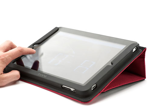 The folio is a cool case and comes in a Nappa leather version in gray or a sand/turquoise color for about $90 or a ballistic nylon in black/red, berry, or slate colors for $50. No matter the color or material, you choose, the case has the same features. It can carry the iPad and is slim enough to fit in a backpack or purse. It has a three-position design that lets the iPad sit up at different angles for watching video, typing and surfing the web.