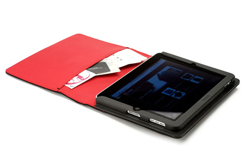 The folio has a pocket specifically for the iPhone on the front and has a molded bumper to protect the iPad from damage. The device is shipping right now and is one of the cooler cases for the iPad I have seen.