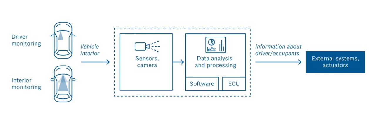 The system that Bosch has developed does all the information processing within the car. No information is saved or passed to third parties. For future autonomous vehicles, the system can be used to ensure a driver doesn't fall asleep in case they need to take over control again. The cameras can also recognize if a child is left in a car and alert parents.