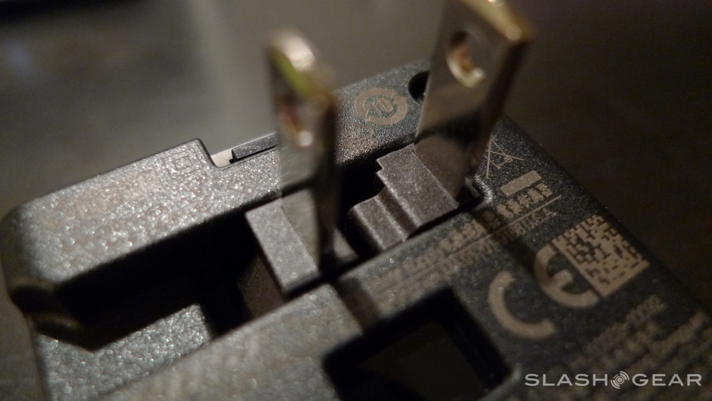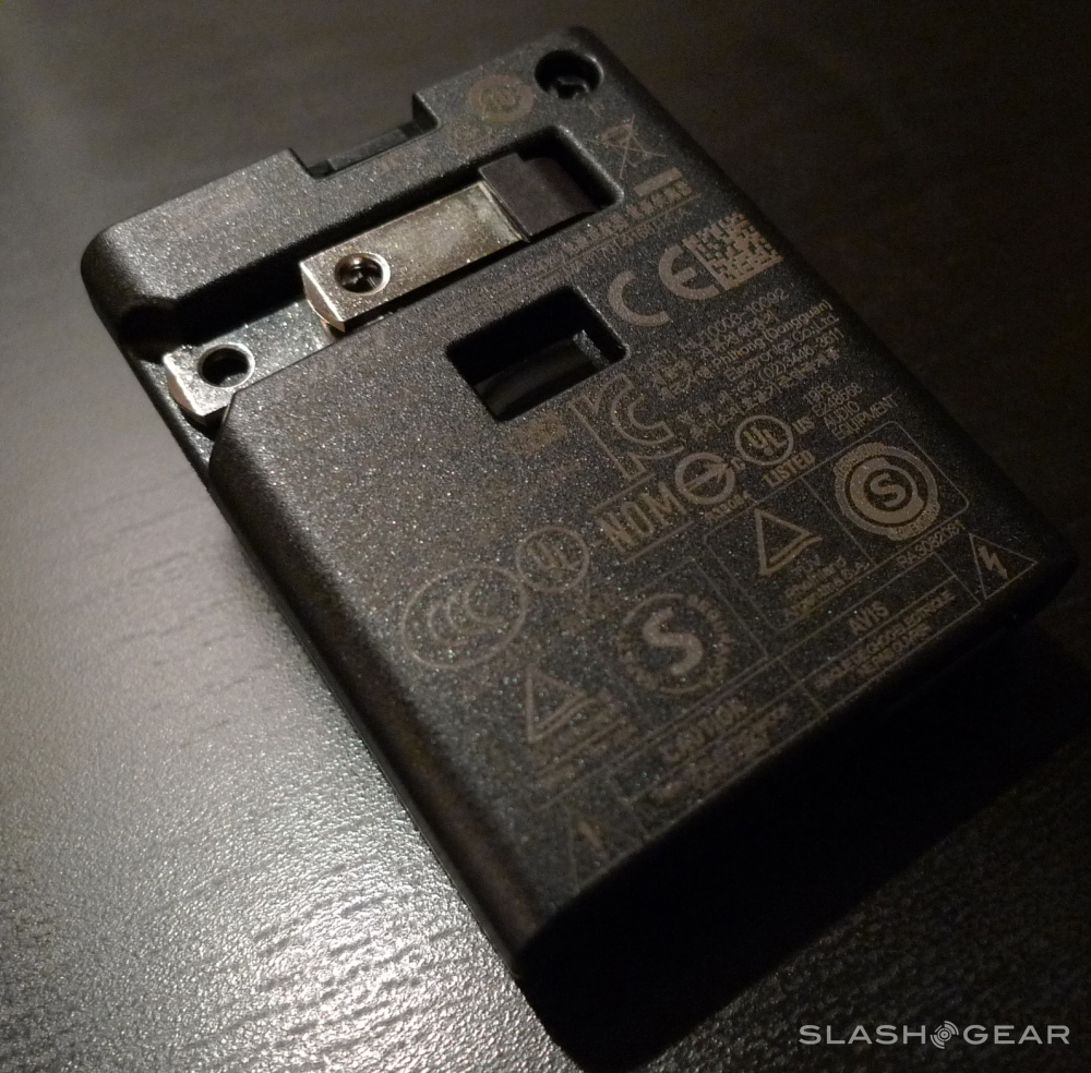 Once the box and plastic is aside, and you've got the instruction books put away somewhere safe incase you need them, you really ought to charge the earpiece up a bit. The Bose Bluetooth Headset comes partially charged, but if you plan on getting any use out of it before it runs out of juice, you'll want to plug it in for a while. To do this, just plug the USB into the device, plug the other end of the USB into the coolest wall plug ever constructed by mankind, and plug that epic wallpiece into the wall. Before we continue, please check out all the printing on this plug – it's awesome: