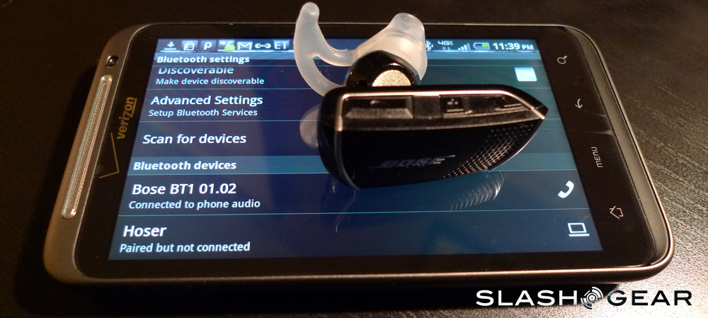 Your Bose Bluetooth headset, like ours, should show up on your Bluetooth list wherever it may be. I connected this Bluetooth Headset up with the brand new HTC ThunderBolt on Verizon. Once I'd pressed the phone button long enough for the light to blink slowly, the Bose name came up on the list almost instantly, and I was able to sync up without even entering a password. Once the two items were synced, they were set to go for the entire time I was testing them.