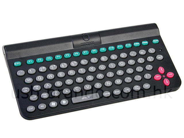 The 83-key 'board has all the usual function keys and arrow buttons, though we can't imagine them being quite as pleasant to type on as a buckled-spring keyboard or even the cheap thing that came with your last budget desktop PC. Still, neither of those would likely fit into your jacket pocket, nor nestle discretely with the remote controls when serving as a PlayStation 3 keyboard.
