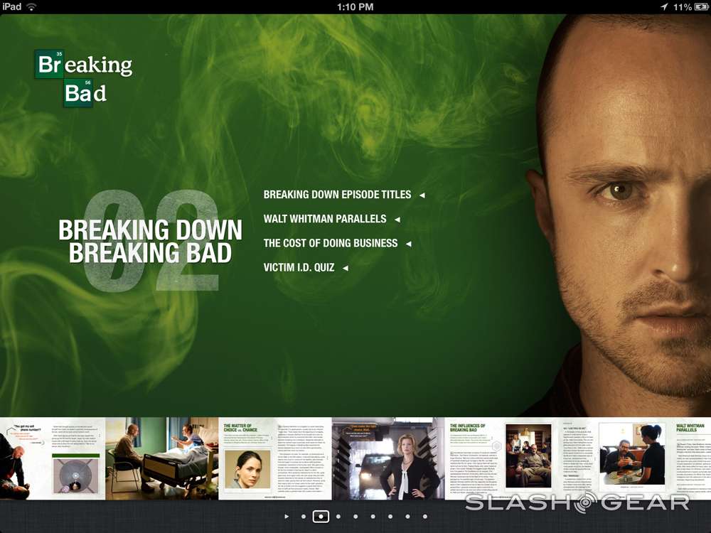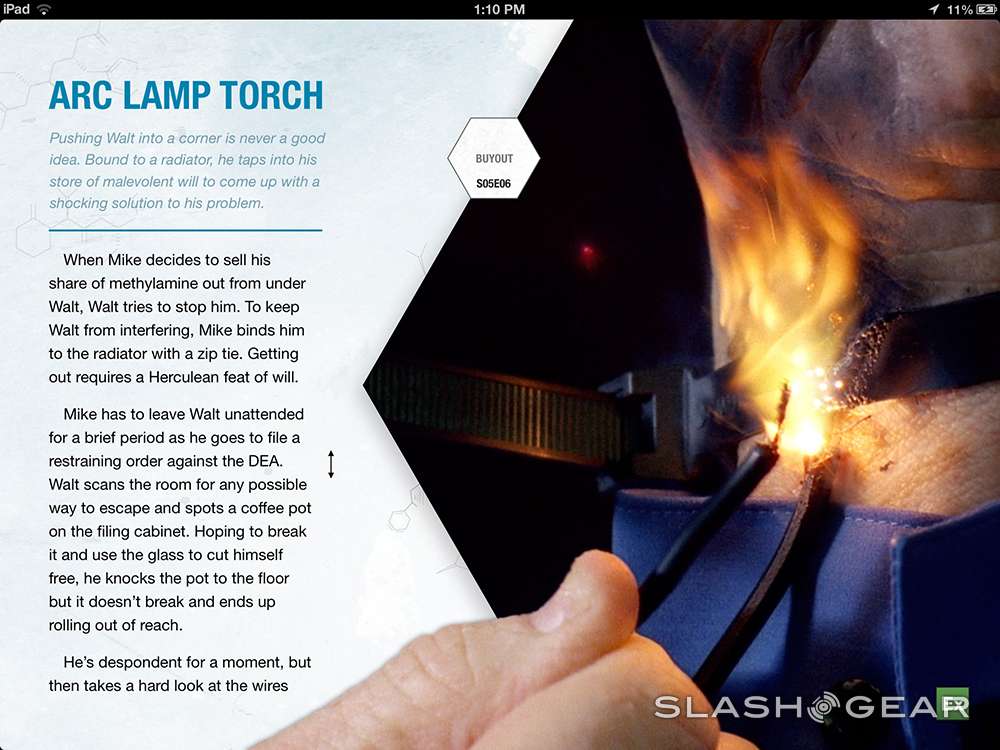 At the moment the public will be able to pick the Breaking Bad: Alchemy iBook up for $7.99 USD as part of a limited-time pricing structure. Expect that amount of cash to go up once the world gets stunned into silence over the final chapter of the television show, hitting AMC on the 11th of next month.