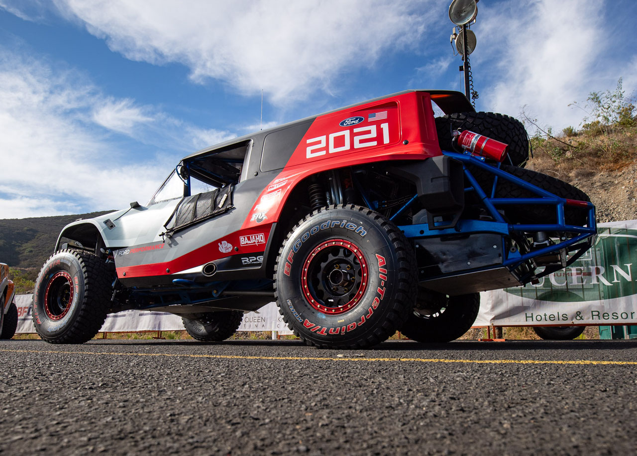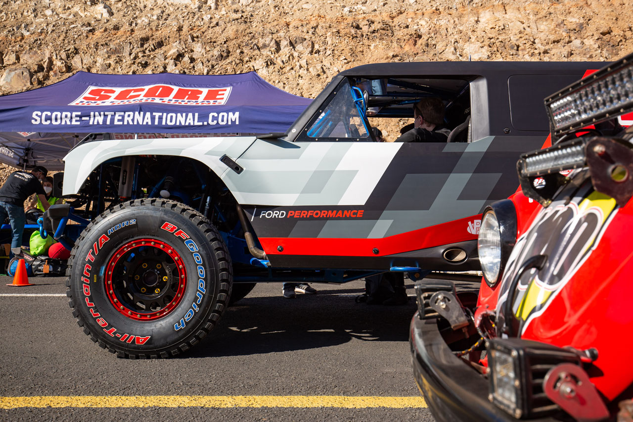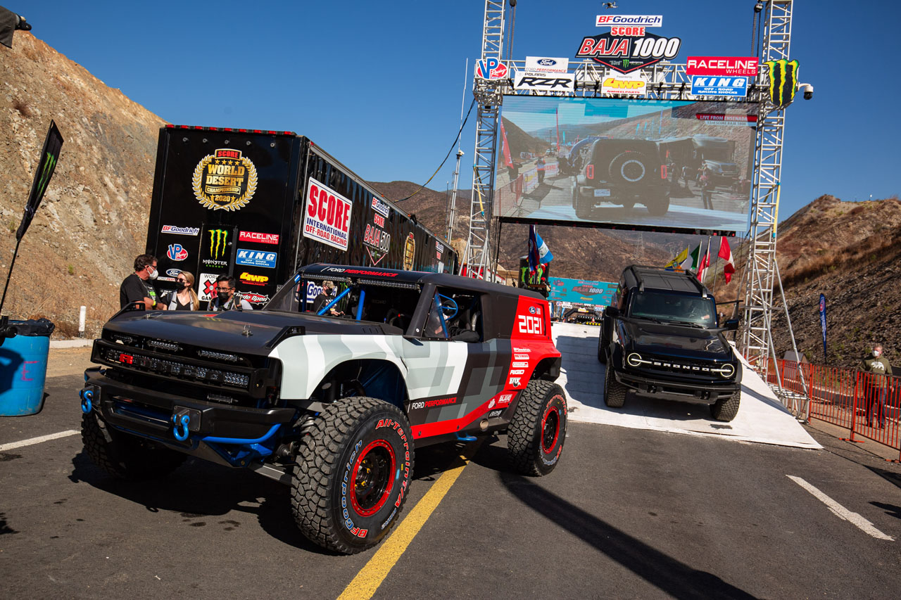 Ford is the official SUV and truck of SCORE-International Off-Road Racing and provides the 2021 F-Series Super Duty Tremor and F-150 Raptor as support vehicles for the Bronco R race team. In the past, the Raptor pickup was tested at Baja. The Bronco R race prototype is designed and built by Ford Performance and Geiser Brothers using a race version of the Bronco High-Performance Off-Road Stability Suspension system with a redesigned independent front suspension and a five-link race-prep rear set up.