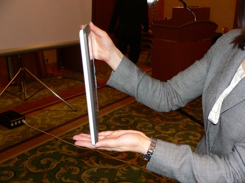 The SV-100B E-paper measures at 15.5mm in thickness and reads electronic documents via a proprietary application that converts data from PC to a "printed" document format that's compatible with the device. The documents can be stored and secured in a 2Gb microSD card with a 128-bit AES encryption and password protected locking security feature. It provides roughly about 10,000 sheets of A4-size documents, and the lithium-ion battery life lasts up to 83 hours or 5,000 pages at the reading rate of 1 page per minute.