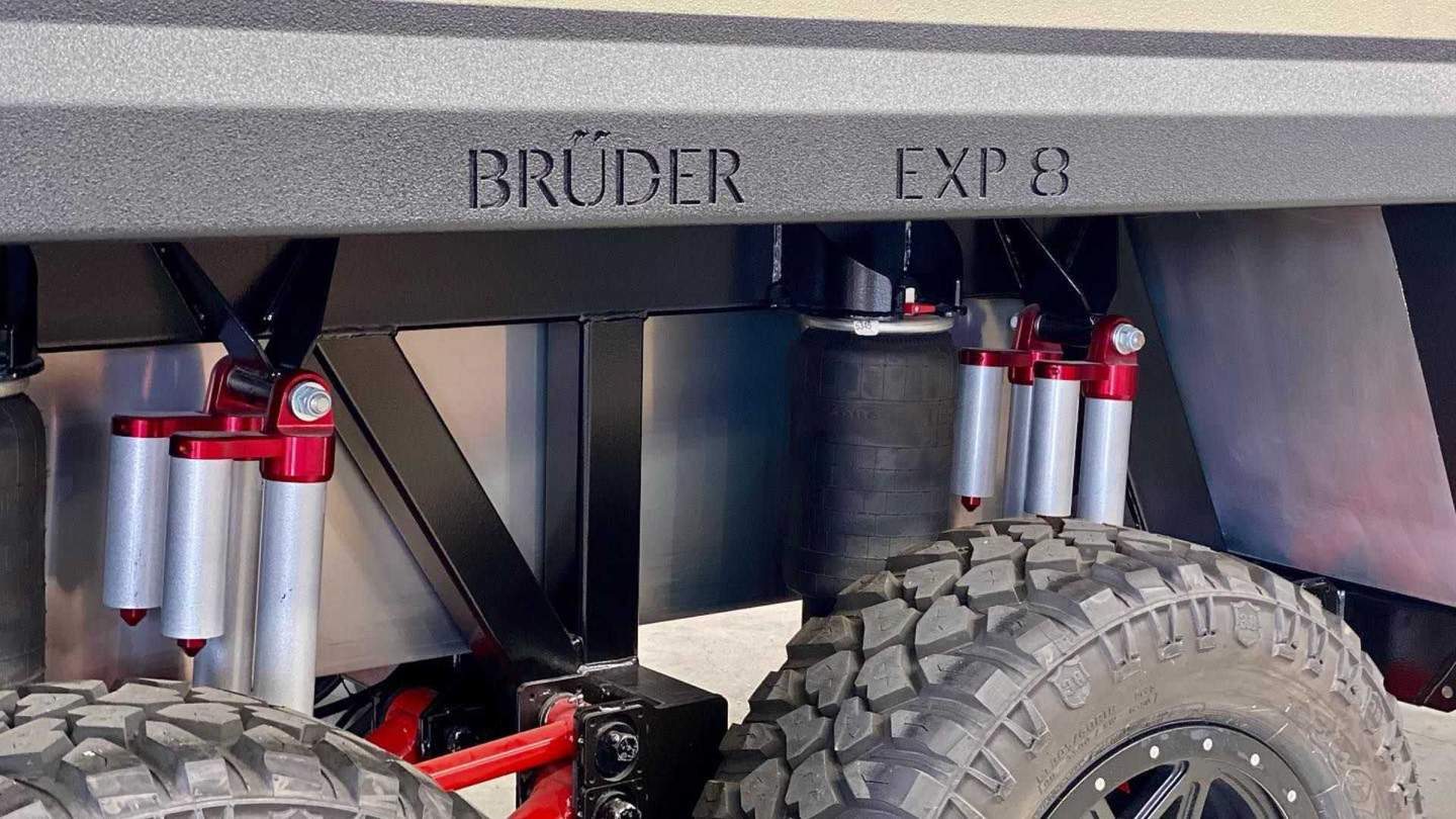 Bruder (or Brother) refers to EXP-8 as a four-season global exploration platform. Measuring 230-inches (5850 mm) long, 84.65-inches (2150 mm) wide, and 114.17-inches (2900 mm) high, the EXP-8 commands attention with its epoxy-bonded composite body. From the outside, those four monotube shock absorbers, rugged wheels, 37-inch mud-terrain tires, and 12-inches of ground clearance are perfectly attuned to the EXP-8's rugged, go-anywhere, and all-conquering vibe.