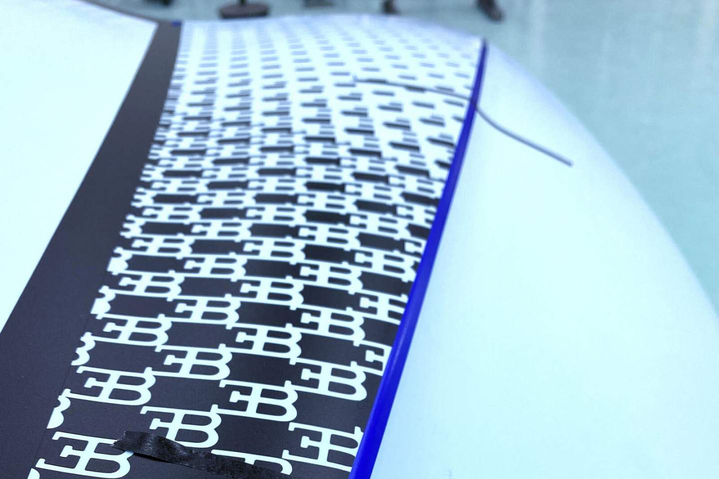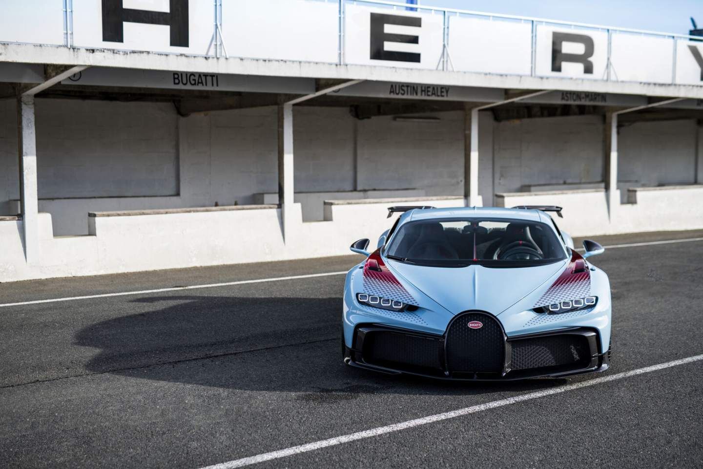 As expected, the customer wanted a hand painted number 32 logo on the doors to honor Chiron's victory, and Bugatti Sur Mesure responded with aplomb. Look closer, and you'll find those red accents on the bodywork that resemble fading stripes are hundreds of miniature EB logos, each applied by hand.