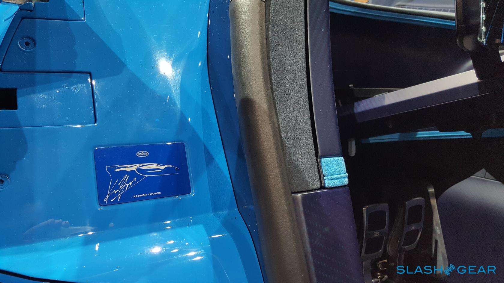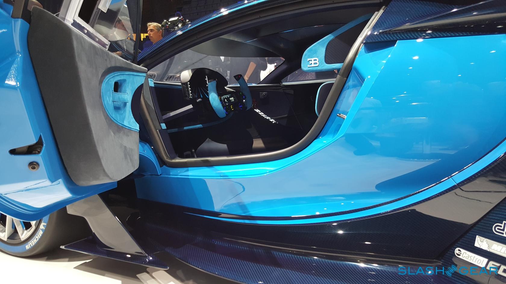 Previewing the replacement to the Bugatti Veyron 16.2, a hyper-car we're expecting to see debut sometime in 2016, the VGT racer gets the company's legendary horseshoe grille but also throws in a PlayStation-style controller wheel. That pulls in exterior video feeds from three cameras, directly to a display in its center.