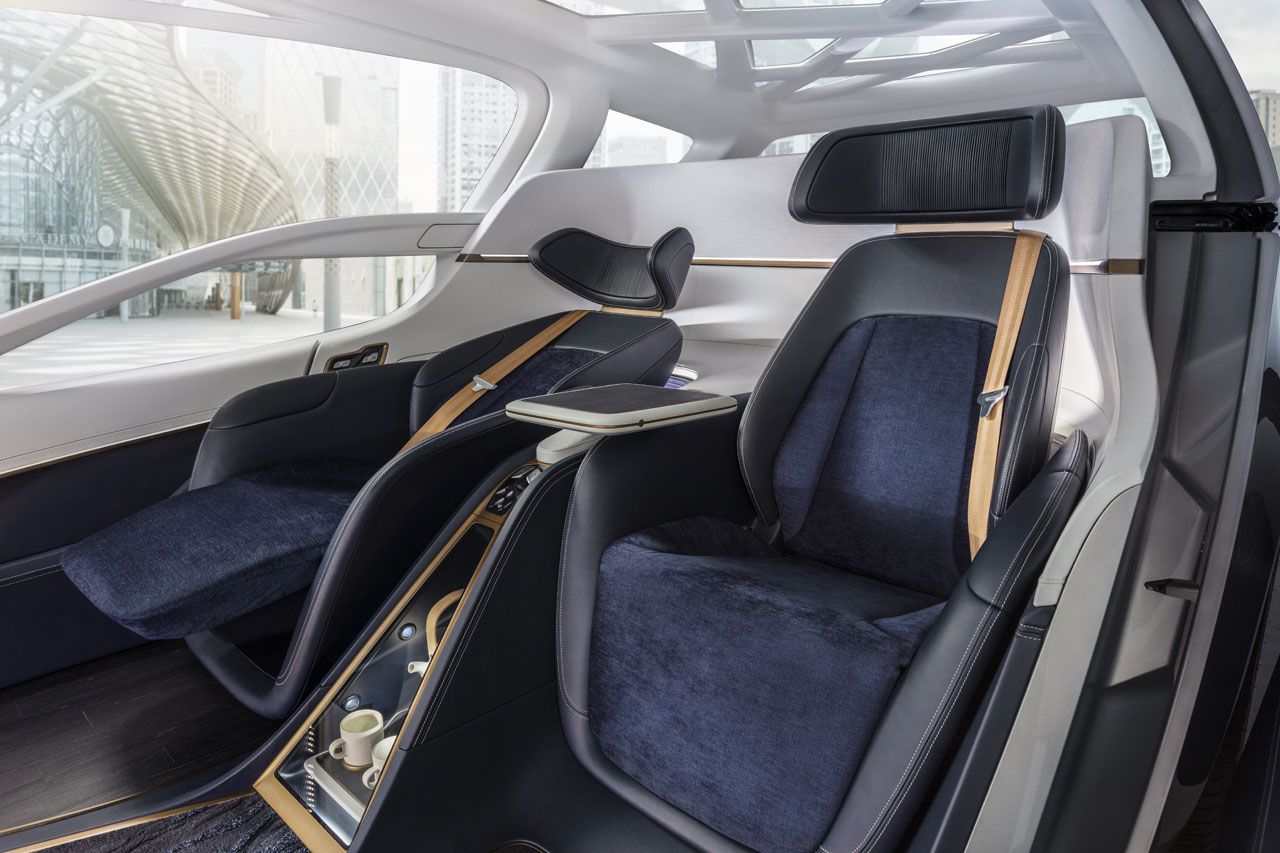 The vehicle also has wing-shaped headlights, which are a Buick design signature. The interior of the GL8 Flagship is very interesting, looking more like a living room than the inside of a vehicle. It uses seats similar to the zero gravity chairs you might see at home and has a flexible seating layout allowing the cockpit to function as an open space for passengers. The interior was inspired by Chinese mountain and water landscapes, and it has a tea tray inside.