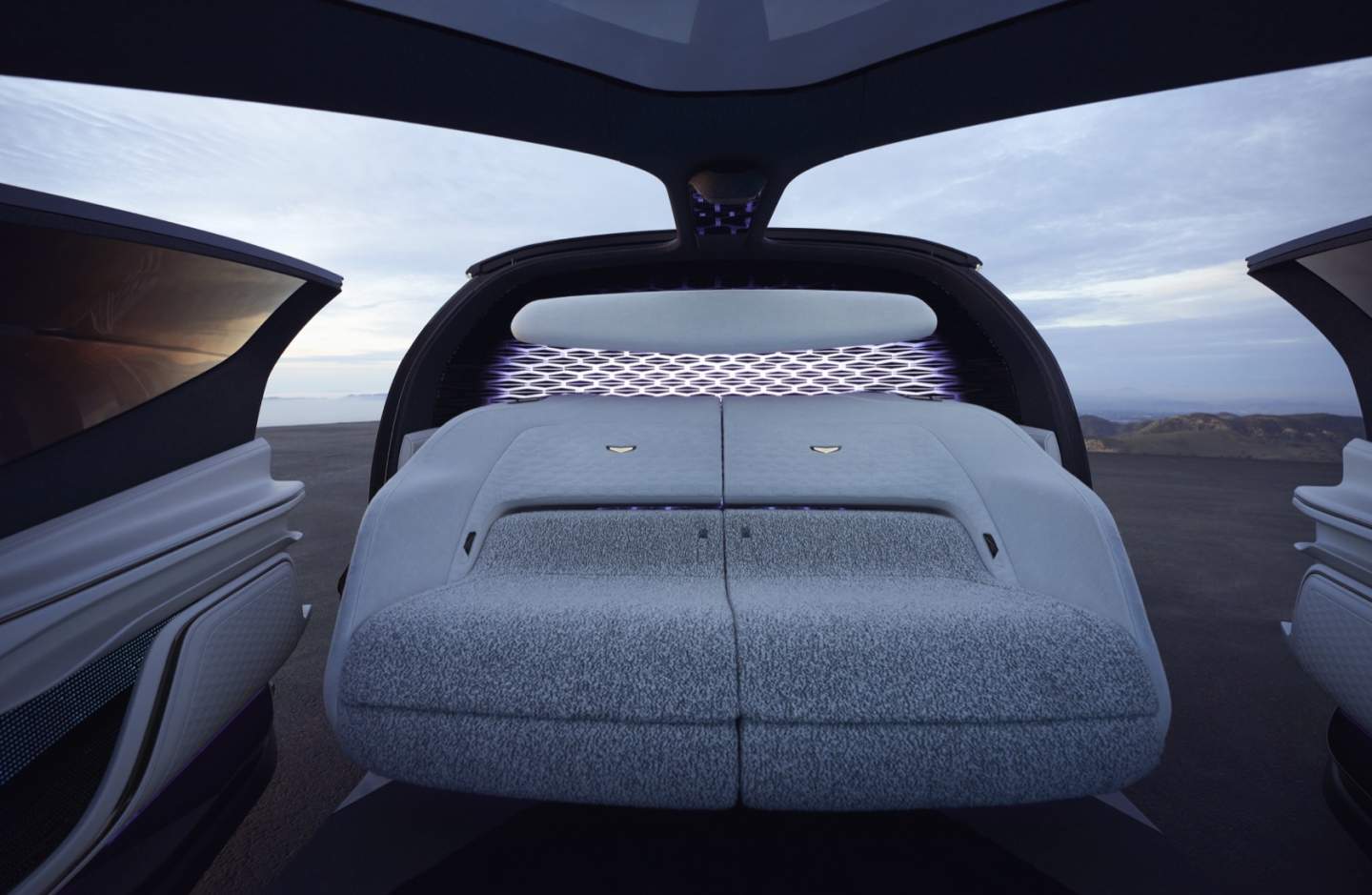 Close the doors, and there's a huge, panoramic display ahead. That offers a variety of augmented reality engagement, entertainment, and "wellness recovery" themes, Cadillac says, navigated via biometric inputs. Future programs could be added via over-the-air downloads.