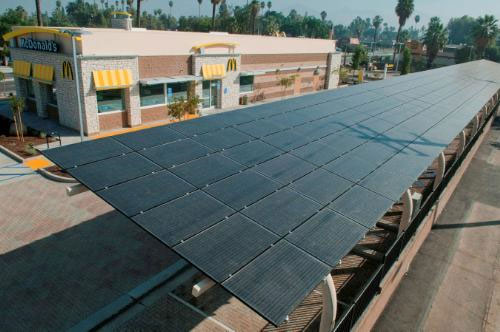 McDonald's is synonymous with golden arches, fries, burgers, and playgrounds for most of us. Another of the many restaurants in the chain is moving away from the golden arches and going green. A restaurant in Riverside, California has turned those golden arches green with green tech in an effort to get the LEED Gold Certification for design in environmental and energy design.