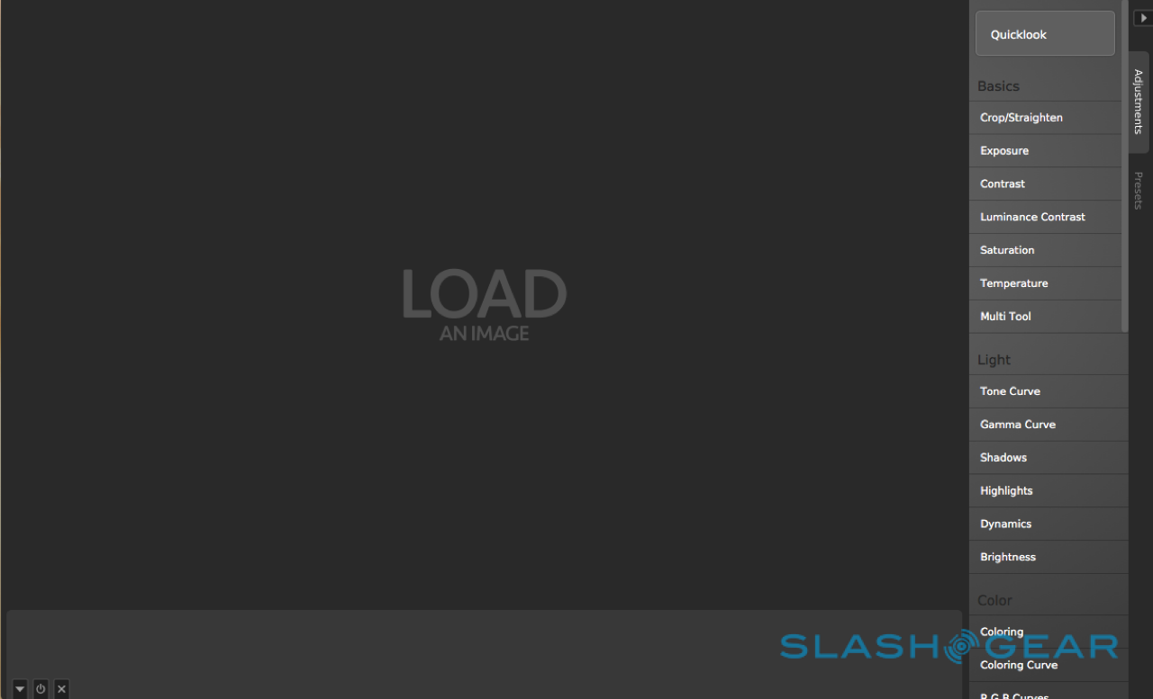 When you open CameraBag2 up, all it asks you to do is load a picture. Once you do, a series of editing options are made available to you. There are, of course, presets should you want a fast-lane to editing a photo.