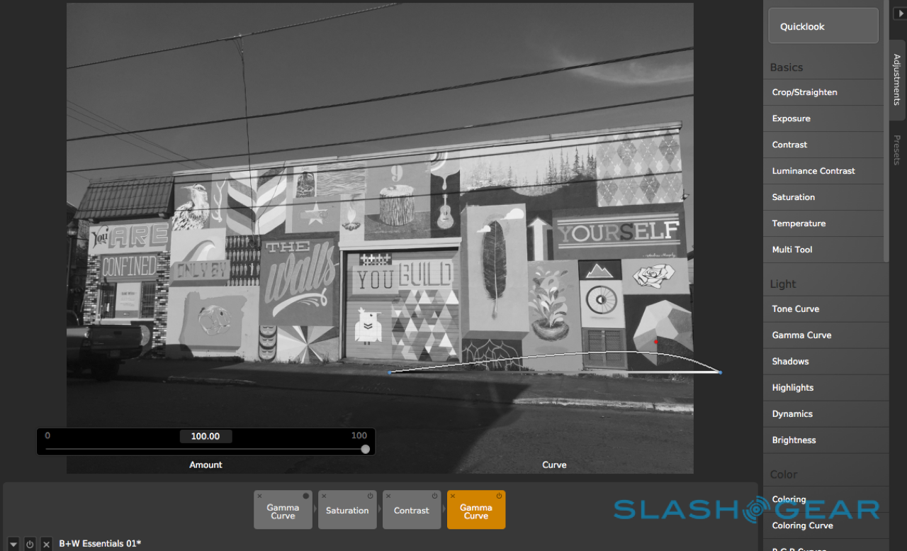 In choosing your editing tool, CameraBag 2 reminds you what they do (don't lie, you've forgotten what a gamma curve is about) and gives you a quick preview of what you'll see if you apply the effect. Same goes for the presets — hover over one, and you get a quick glance at what it offers.