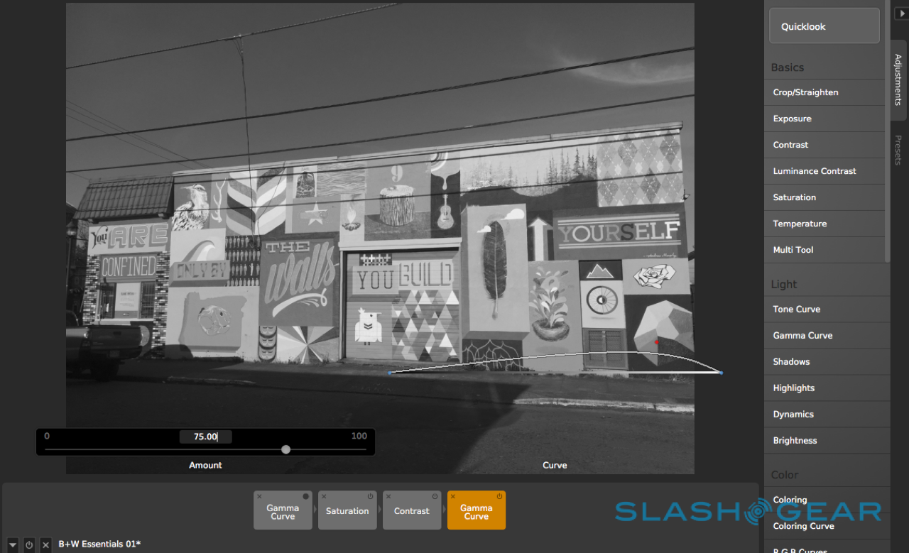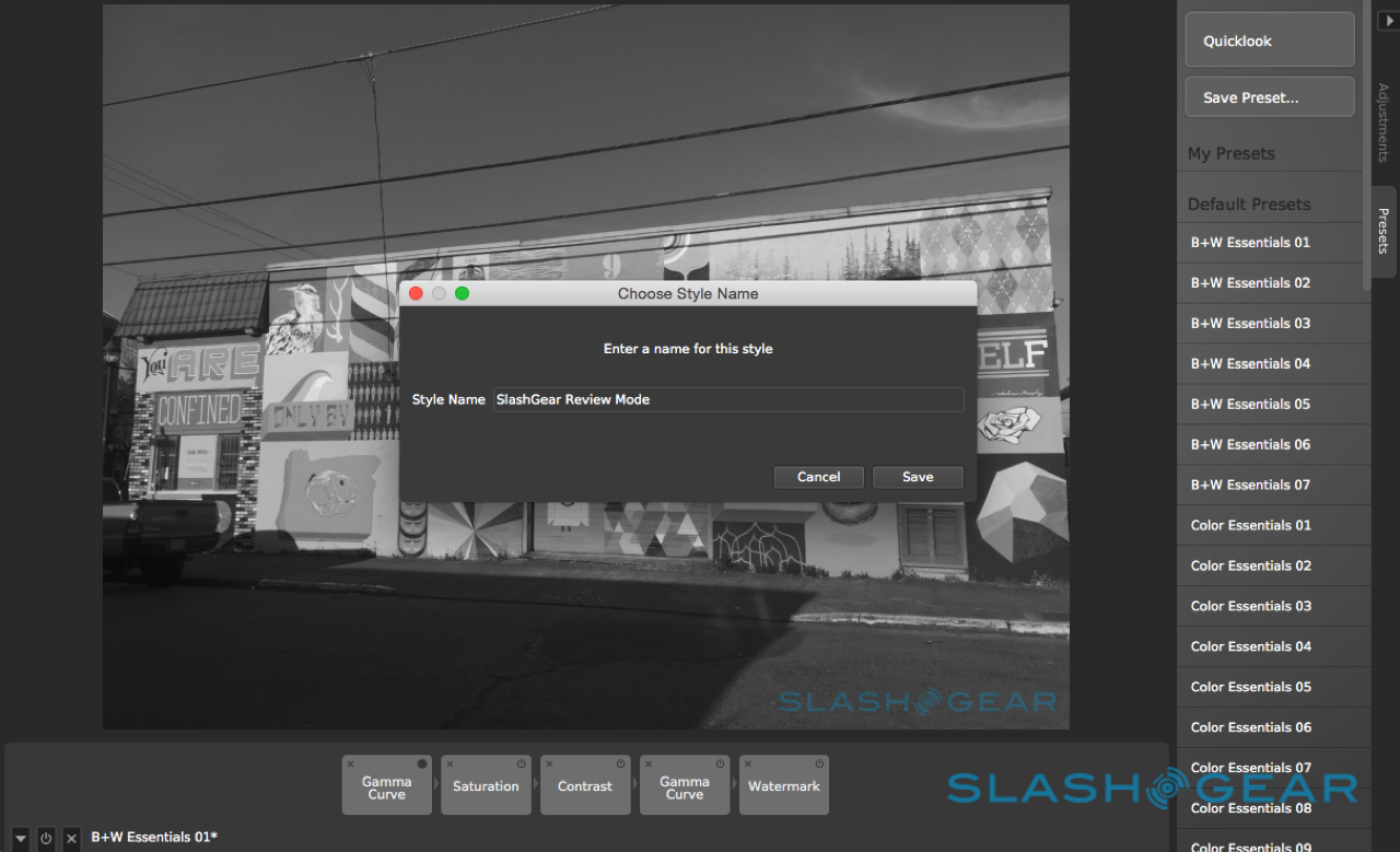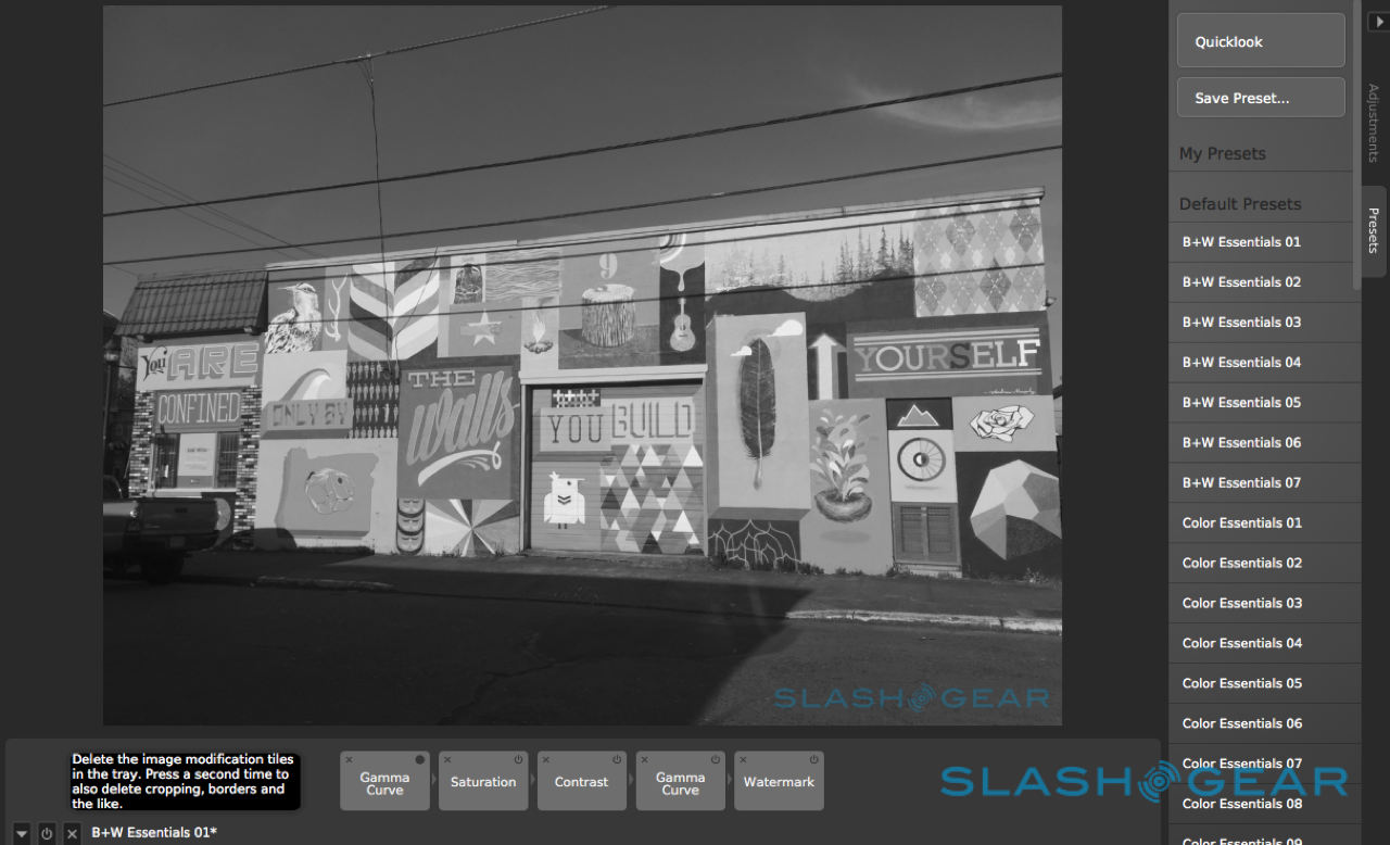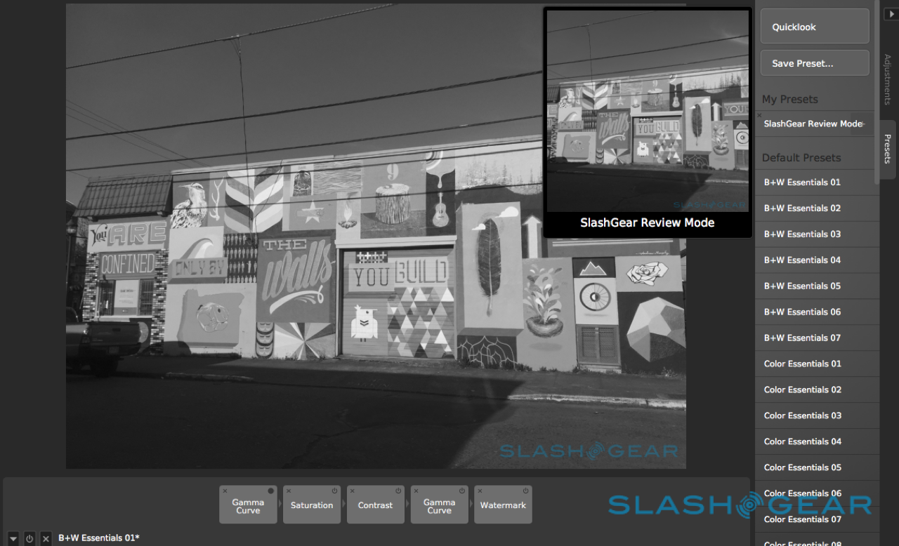 Watermarking is equally easy and powerful. We watermark a lot of pics at SlashGear, and though I've got a macro set up via another program, CameraBag 2 makes individual and batch watermarking a breeze. I simply haven't encountered another editing tool that makes it as simple.